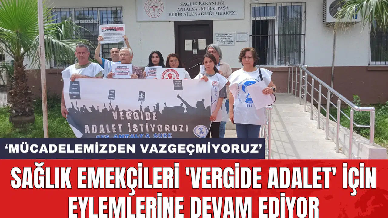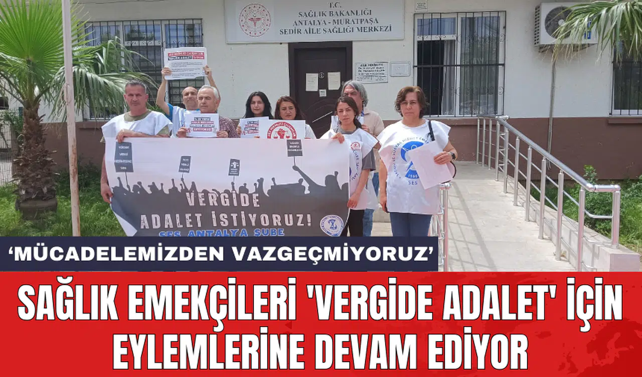 Sağlık ve Sosyal Hizmet Emekçileri Sendikası (SES), 'Vergide Adalet' talebiyle başlattığı eylemler kapsamında sekizinci hafta eylemini Sedir Aile Sağlığı Merkezi önünde gerçekleştirdi. SES Antalya Şube Eş Başkanı Şükran İçöz, 'Çalışanların sırtına yüklenen yüksek vergi kesintilerinden vazgeçilmelidir' dedi.