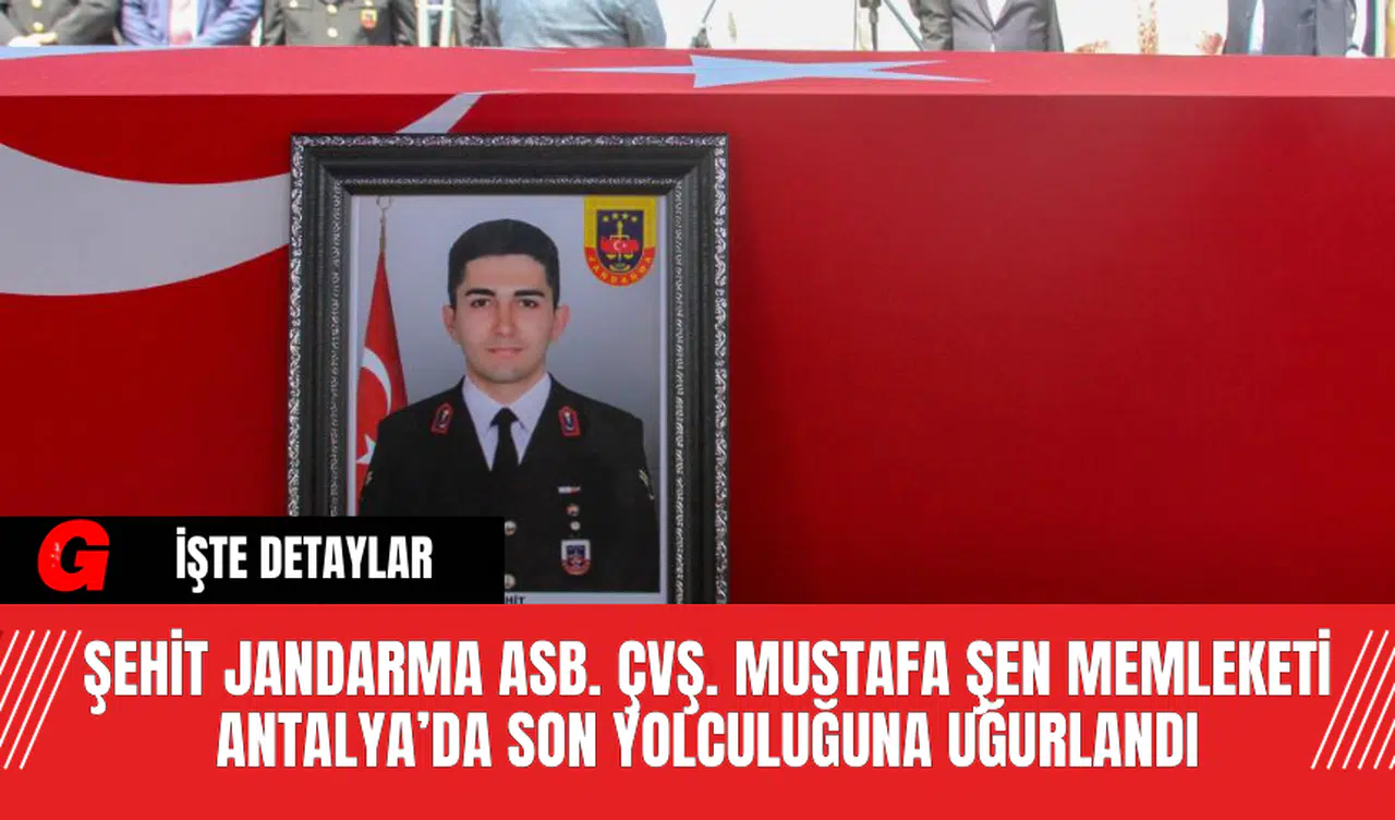 Şırnak’ta devriye görevi sırasında meydana gelen trafik kazasında şehit olan Jandarma Astsubay Çavuş Mustafa Şen’in (23) cenazesi, memleketi Antalya’da toprağa verildi. Şehit Şen’in ailesi ve yakınları, tören sırasında duygusal anlar yaşadı.