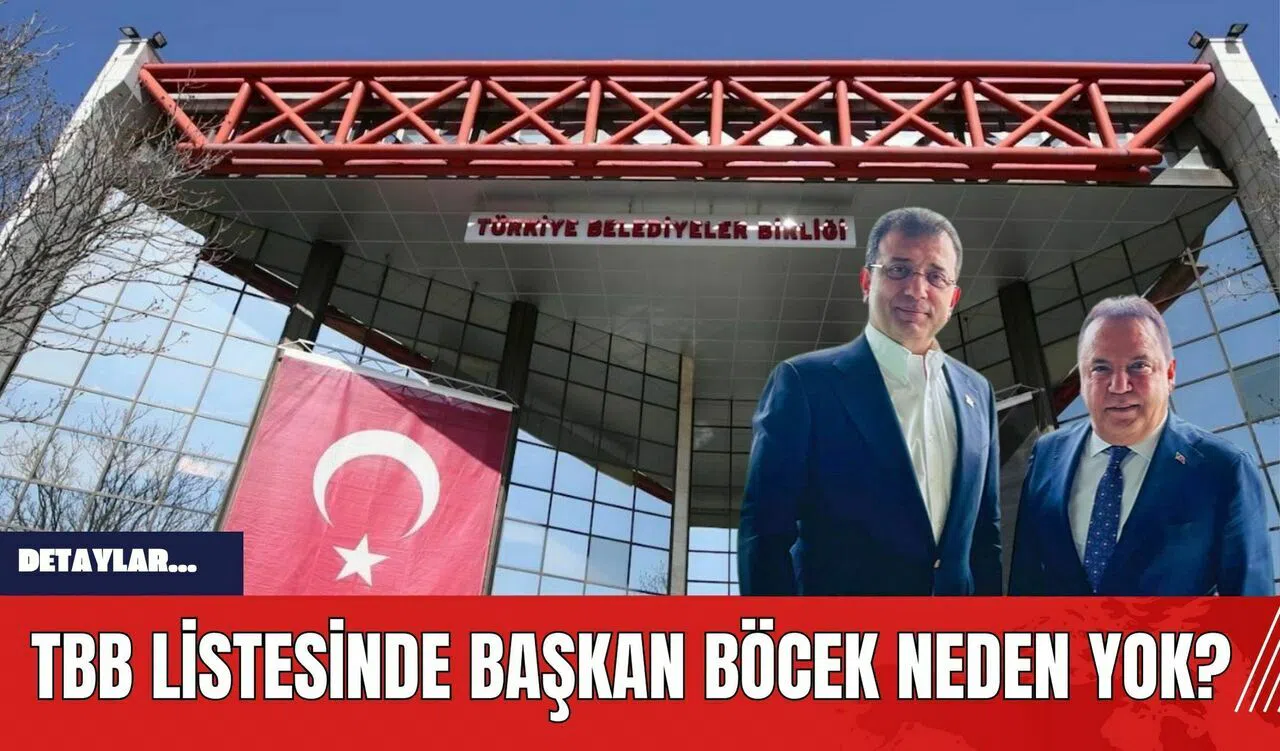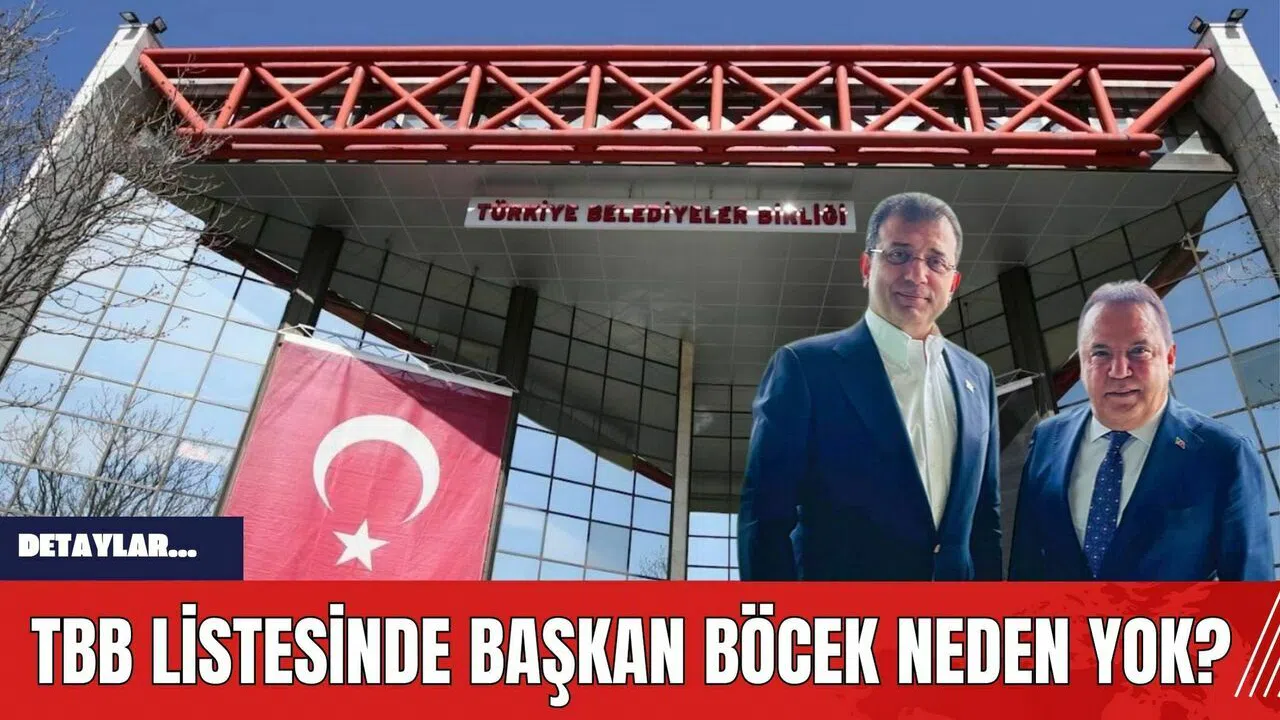 Türkiye Belediyeler Birliği'nde (TBB) 5 Haziran 2024’te yeni Başkan İstanbul Büyükşehir Belediye Başkanı Ekrem İmamoğlu oldu ancak seçimde bir nokta dikkat çekti. İmamoğlu'nun listesinde Türkiye'nin en büyük beşinci şehri ve turizm açısından önemli bir merkez olan Antalya'nın Belediye Başkanı Muhittin Böcek'in olmaması tepki çekti. Antalya Büyükşehir Belediye Başkanı Muhittin Böcek'in neden olmadığı hakkında henüz bir açıklama gelmedi.
