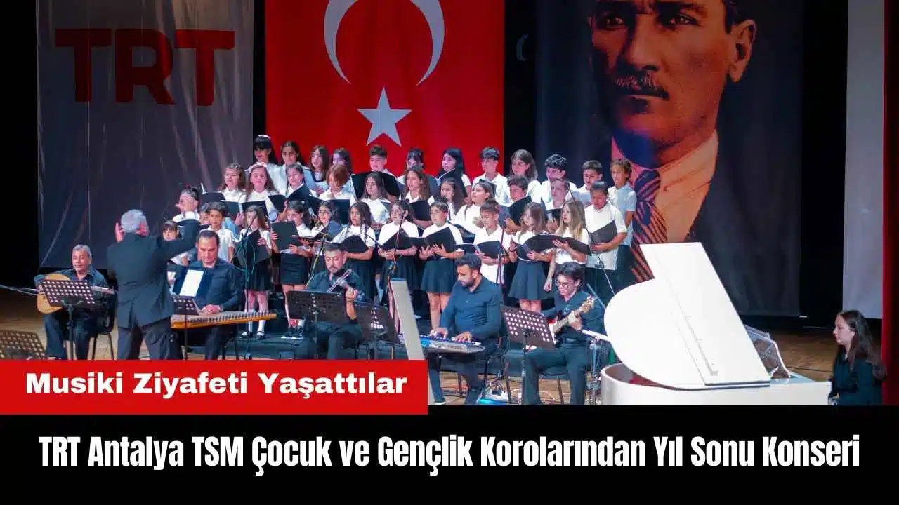 TRT Antalya Türk Sanat Müziği Gençlik Korosu ve TRT Antalya Türk Sanat Müziği Çocuk Korosu yılsonu konseri, Erdem Bayazıt Kültür Merkezi'nde gerçekleştirildi. TRT Antalya TSM Gençlik Korosu şefliğini Nilgün Karaduman, TRT Antalya TSM Çocuk Korosu şefliğini Sonay Yener üstlenirken koristler şeflerinin yönetimi ve saz sanatçılarının eşliğinde bir yıl boyunca aldıkları eğitimin sonuçlarını sahneye taşıdı.