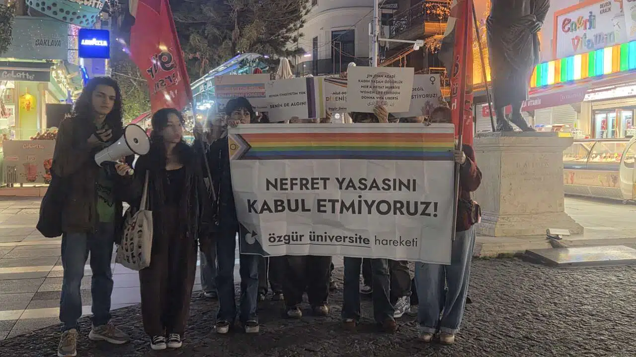 Özgür Üniversite Hareketi üyeleri, Antalya Attalos Meydanı'nda bir araya gelerek LGBTİ+ haklarını doğrudan hedef alan yasa taslağına dair kamuoyu açıklaması yaptı. Açıklamada, 11. yargı paketinden çıkarılıp ek maddelerle yeniden gündeme getirilen düzenlemenin içeriğine dair şu detaylar paylaşıldı: