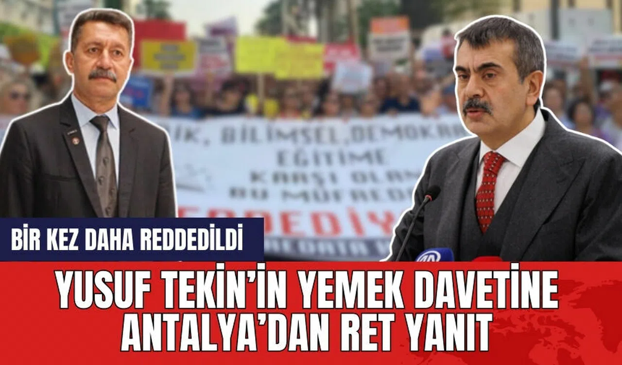 Öğretmenler için “kamudan fonlanıyorlar” diyen, Milli Eğitim Bakanı Yusuf Tekin, 24 Haziran 2024 tarihinde Ankara’da “eğitimin paydaşlarıyla bir araya gelmeyi” planladığı akşam yemeği davetine Eğitim-İş Antalya Şubesi’nden ret yanıtı aldı. Eğitim İş Antalya Şube Başkanı Sadık Acar, yaptığı açıklamada Yusuf Tekin’e seslenerek ¨Kimler olduğunu açıkça belirtmediğiniz “eğitimin paydaşlarıyla” bu akşam yapacağınız yemek davetine katılmayacağımızı bildiririz¨ diyerek yemek davetini reddettiğini duyurdu.