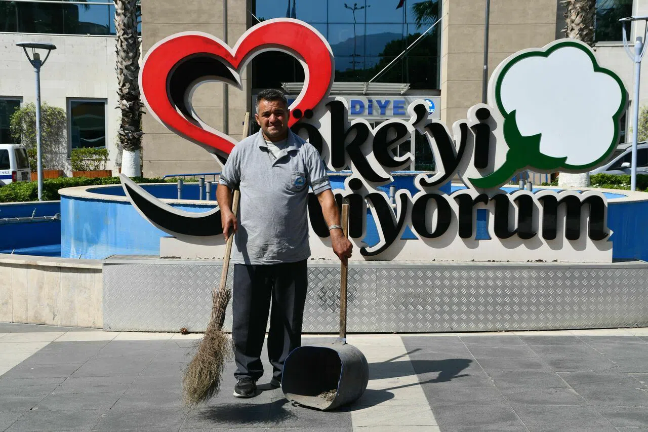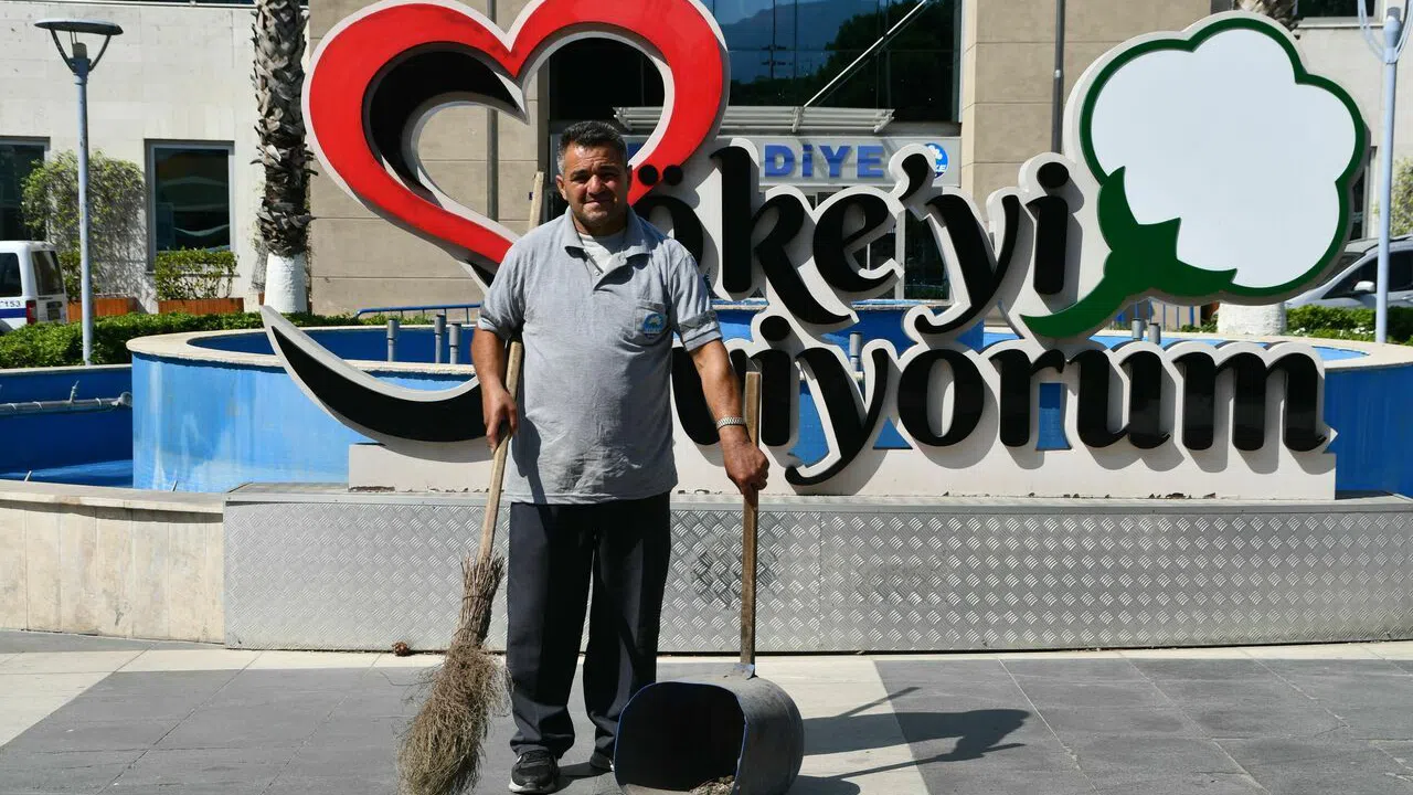 Çalıştığı bölgede vatandaşlar tarafından sevilen temizlik işçisi Gökmen, esnafların bir kez daha takdirini toplamayı başardı.