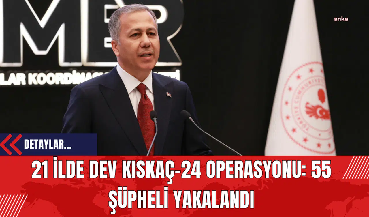 İçişleri Bakanı Ali Yerlikaya, son 4 gündür devam eden “Kıskaç-24” operasyonları kapsamında 55 şüphelinin yakalandığını duyurdu. Emniyet Genel Müdürlüğü İstihbarat Başkanlığı, KOM Başkanlığı ve TEM Daire Başkanlığı'nın koordinesinde yürütülen operasyonlar, ülke genelinde büyük yankı uyandırdı.
