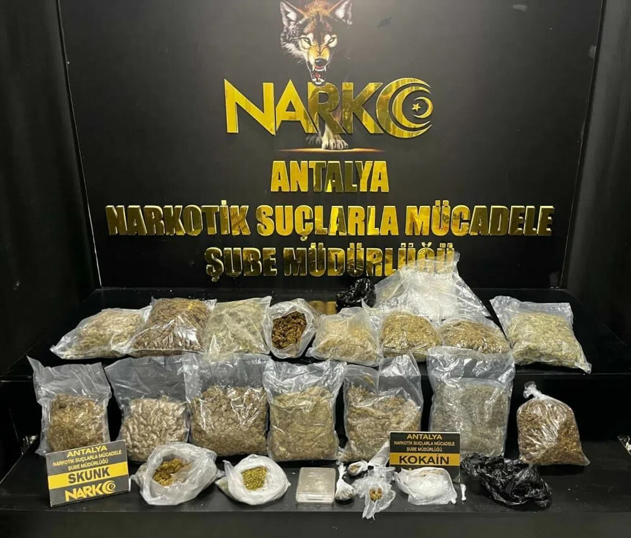 D.T. ve A.V. isimli şahısların araçlarında ve ikametleri içerisinde esrar (Skunk) maddesi sattıkları ve bu uyuşturucu maddeleri Muratpaşa ilçesinde bulunan ikametlerinde depoladıkları, bu depolanan maddeleri ilimiz genelinde torbacı olarak tabir edilen şahıslar aracılığı ile satacağı yönünde bilgiler elde edilmesi üzerine harekete geçildi. Antalya Emniyet Müdürlüğüne bağlı, Narkotik Suçlarla Mücadele Şube Müdürlüğü ekipleri tarafından D.T. ve A.V. isimli şüpheli şahısların ikametlerinde ve araçlarında yapılan aramada şeffaf renkli vakumlu poşetler içerisinde daralı 8.515 gram Esrar (Skunk), daralı 20 gram kokain maddesi ve 1 adet hassas terazi ile uyuşturucu ticaretinden elde edildiği değerlendirilen yüklü miktarda para ele geçirildi. Şüpheli D.T. ve A.V. isimli şahıslar hakkında adli işlem başlatıldı.