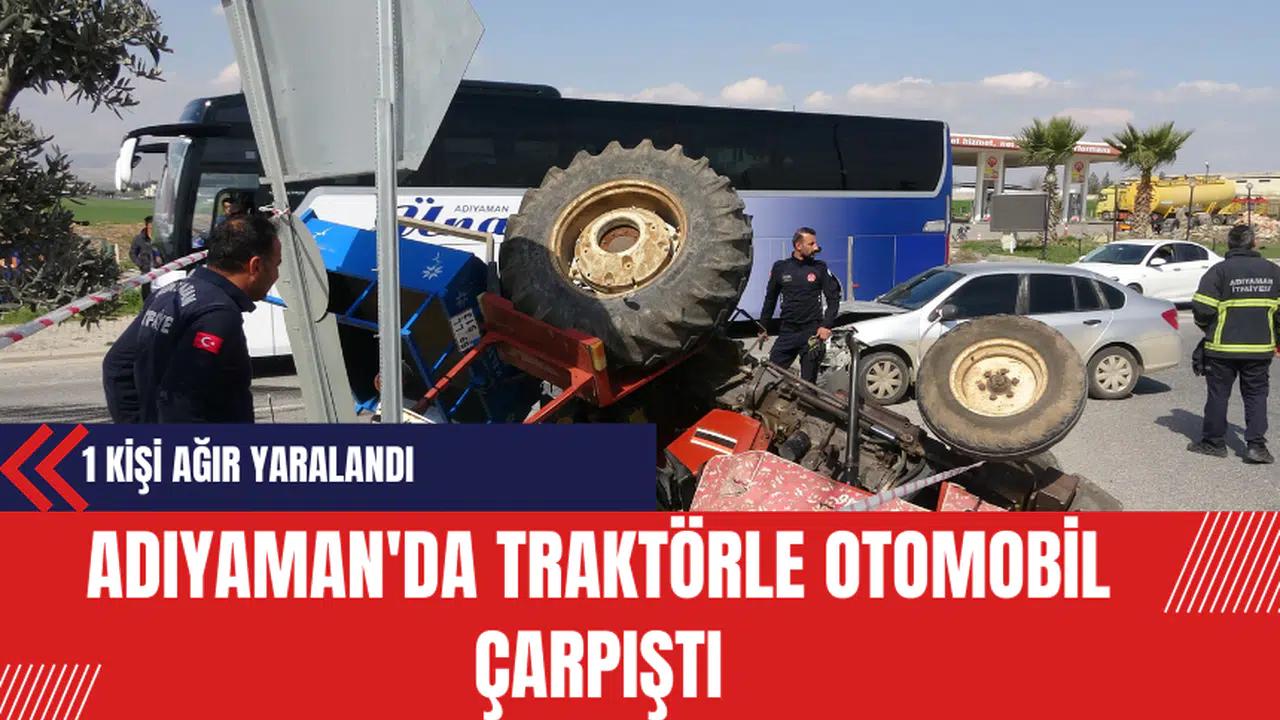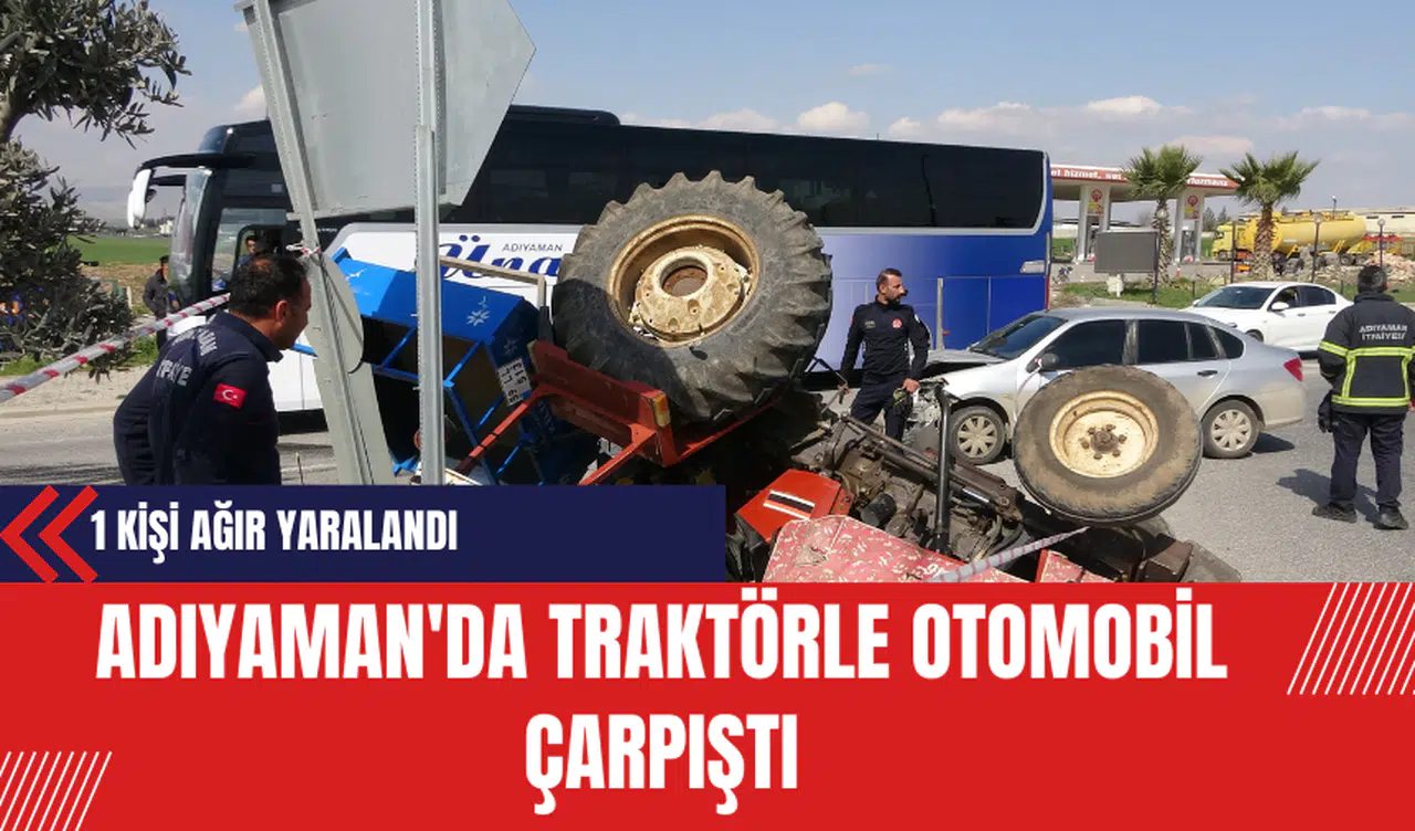 Adıyaman'ın Gölbaşı ilçesi yakınlarında meydana gelen trafik kazasında, bir traktör ile bir otomobil çarpıştı. Kazanın sonucunda traktör devrilerek ters döndü ve bir kişi ağır yaralandı.
