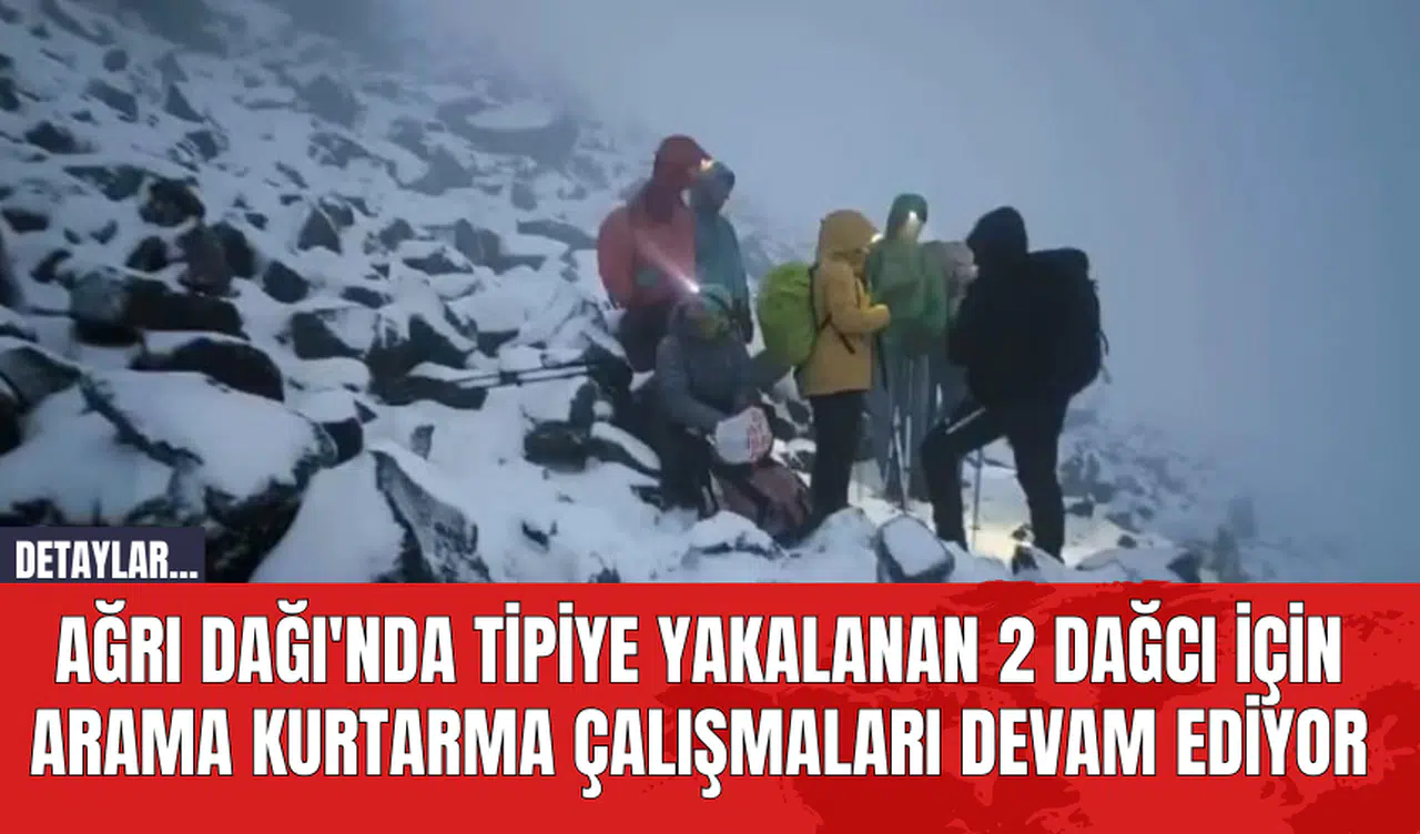 Ağrı Dağı'nın 5137 metre yüksekliğindeki zirveye yakın bölgede, 5050 rakımda tipiye yakalanan 2 dağcıdan haber alınamıyor. Olay, dağcıların tipi nedeniyle kaybolmasıyla başladı ve arama kurtarma çalışmalarının başlamasına neden oldu.