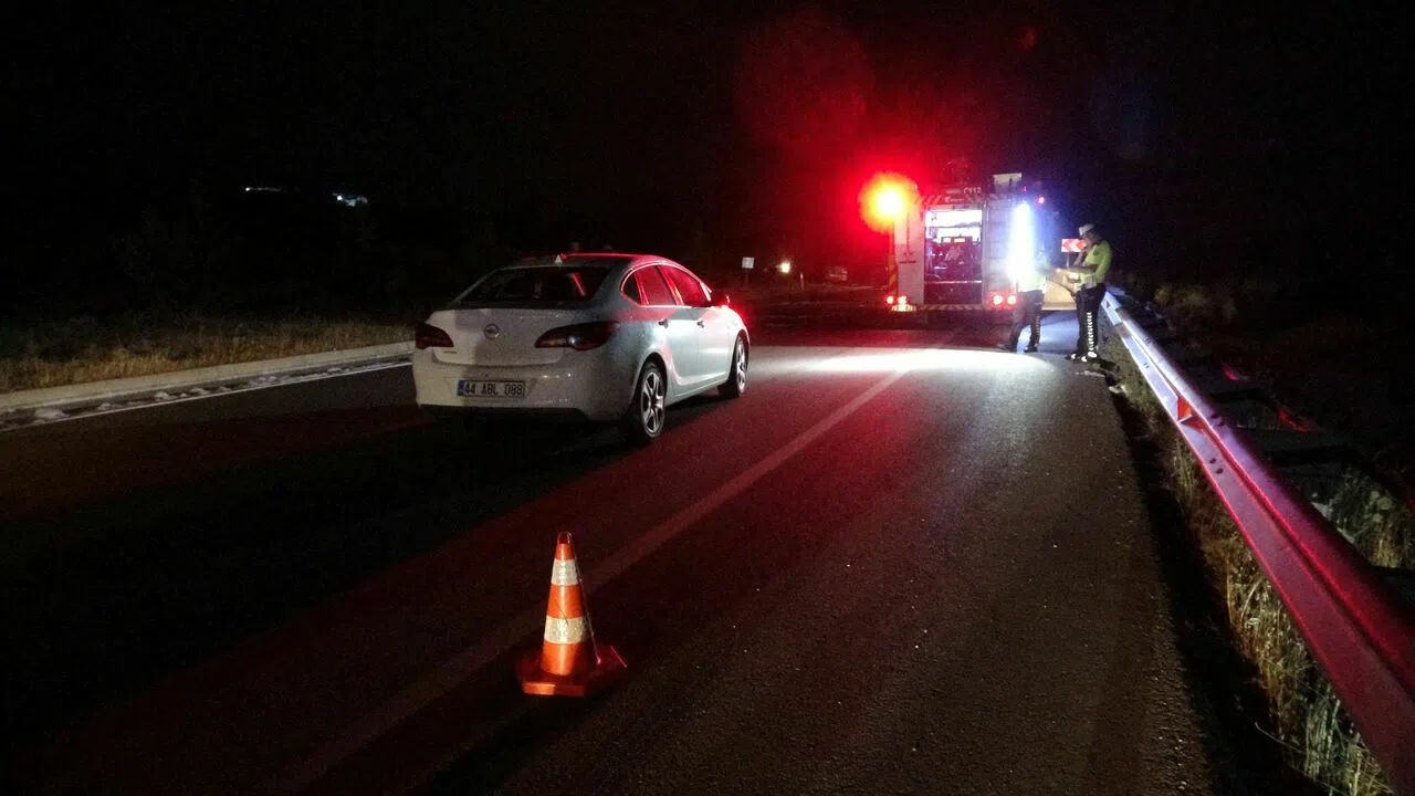 Kilis-Gaziantep karayolunda seyir halinde bulunan ve bir anda alevlerin yükseldiği otomobil, refüje çarparak durabildi.