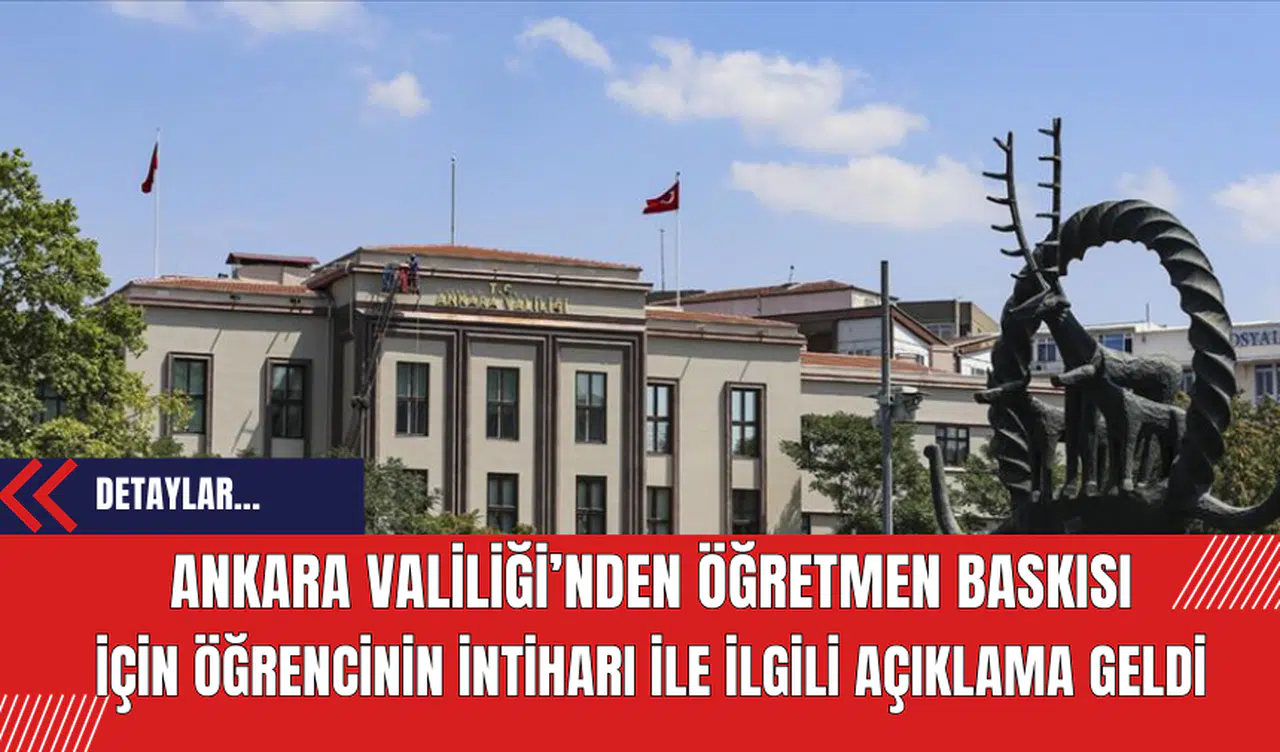 Ankara Valiliği, bir lise öğrencisinin, öğretmeninden baskı gördüğü için intihar ettiği yönündeki haberlerin gerçeği yansıtmadığını, olayın gerçek sebebinin anlaşılması soruşturma başlatıldığını bildirdi.