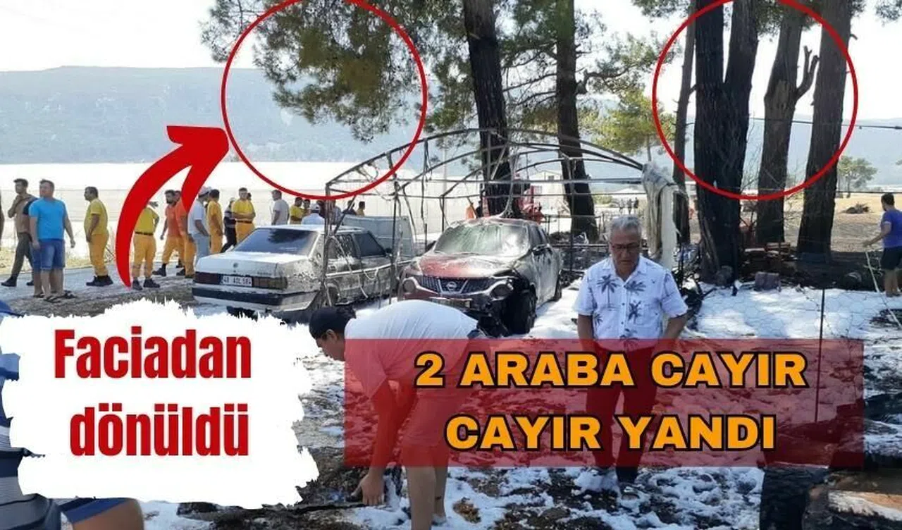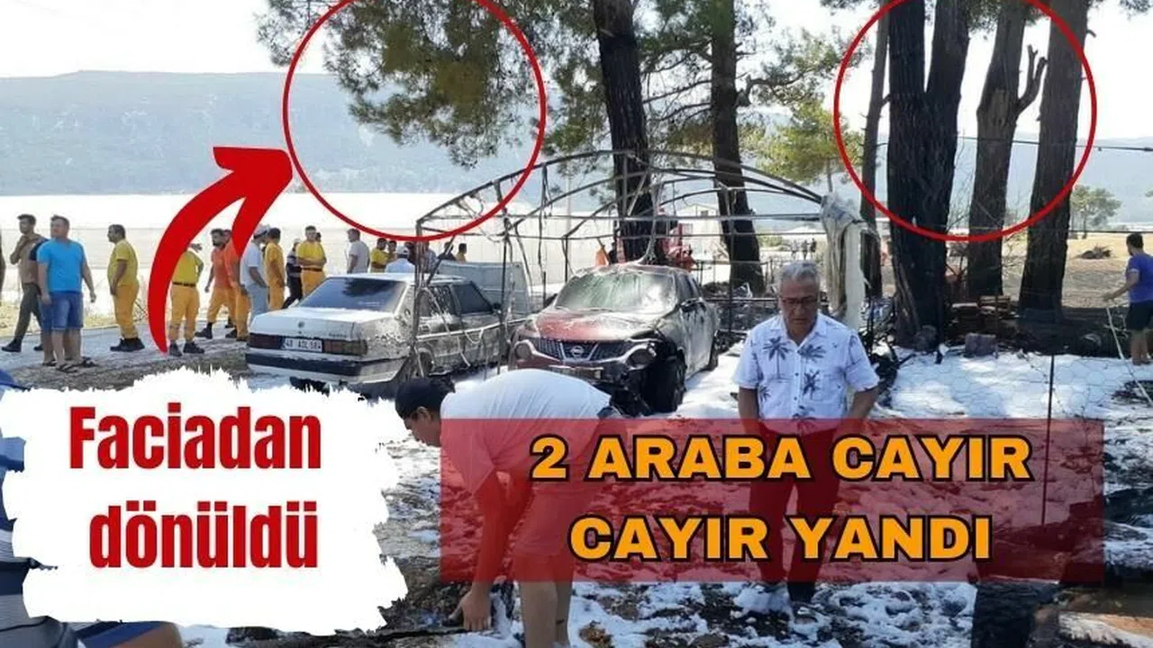 Yeşillik alanda yanan araçlara erken müdahele edilmesi, olası bir orman yangının önüne geçilmiş oldu. Ekipler olayla ilgili inceleme başlattı.