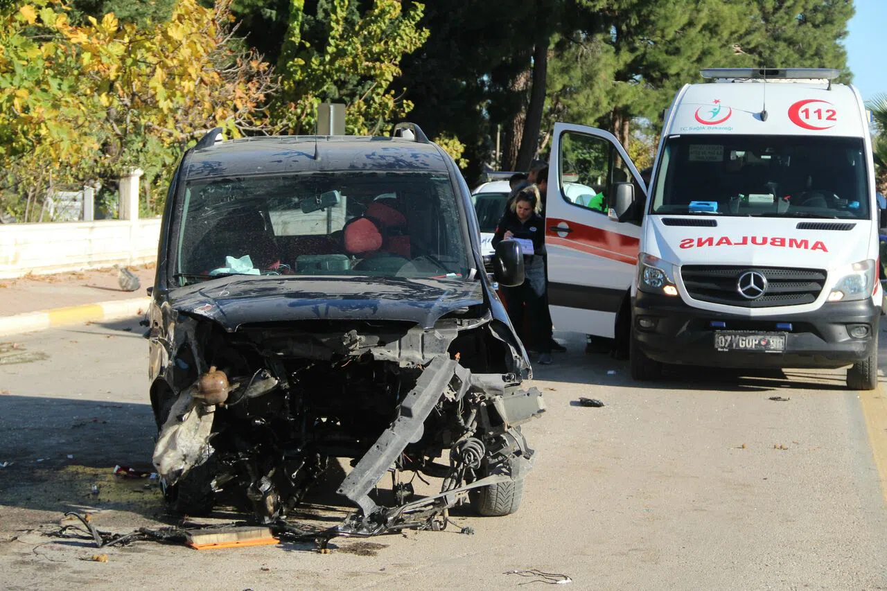 Kaza, önceki gün saat 14.30 sıralarında Kepez ilçesi Aktoprak Mahallesi Şehit Bülent Alkan Caddesi ile İstiklal Caddesi’nin kesiştiği noktada meydana geldi. Varsak istikametinden şehir merkezine seyir halinde olan Ramazan E. idaresindeki 07 BDS 31 plakalı hafif ticari araç, İstiklal Caddesi’nden karşı yöne geçen Muhittin A. yönetimindeki 07 ANB 466 plakalı otomobille çarpıştı. Çarpışmanın şiddetiyle kontrolden çıkan otomobil önce kaldırıma, ardından ağaca çarptı. Hafif ticari araç ise motoru yerinden çıktıktan sonra yan yatıp sürüklendi. Kazayı görenler durumu 112 Acil Çağrı Merkezine bildirdi. İhbarla bölgeye, itfaiye, sağlık ve polis ekipleri sevk edildi. Otomobilin içinde sıkışan ve ön bölümü yanan otomobildeki sürücü Muhittin A. ile yanındaki ismi öğrenilemeyen yolcu, itfaiye ve vatandaşlar tarafından çıkarıldı. Hafif ticari aracın sürücüsü Ramazan E., Zafer K., Muhammet Fırat B. ve otomobil sürücüsü ile yanındaki yolcu, olay yerindeki ilk müdahalelerin ardından yakındaki hastanelere kaldırıldı. Kaza sonrası polis caddeyi araç trafiğine kapattı. Kazaya karışan araçların yoldan kaldırılmasının ardından yol trafiğe açıldı.
