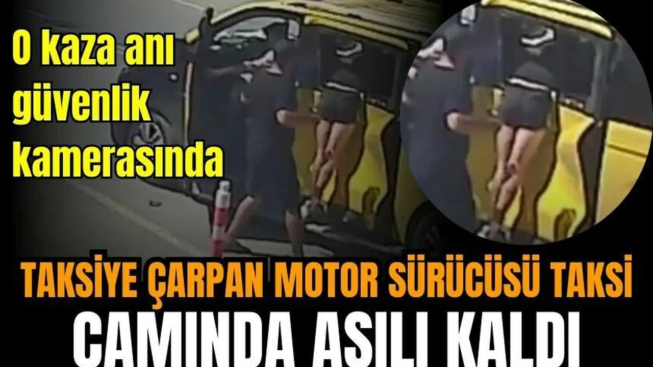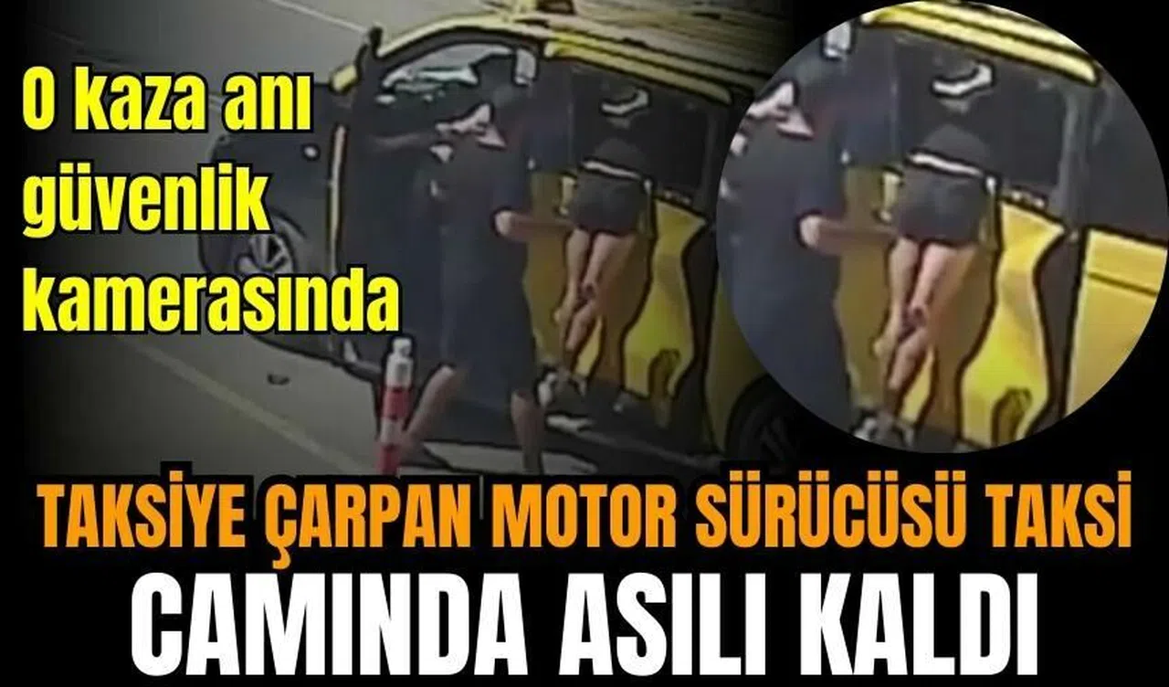 Güvenlik kameralarına yansıyan görüntülerde, ticari taksinin döndüğü sırada motosikletin çarpma anları, ardından sürücünün çarpmanın etkisiyle fırlayarak arka camdan içeriye girmesi ve motosikletin ise bir anda alev alması yer aldı.