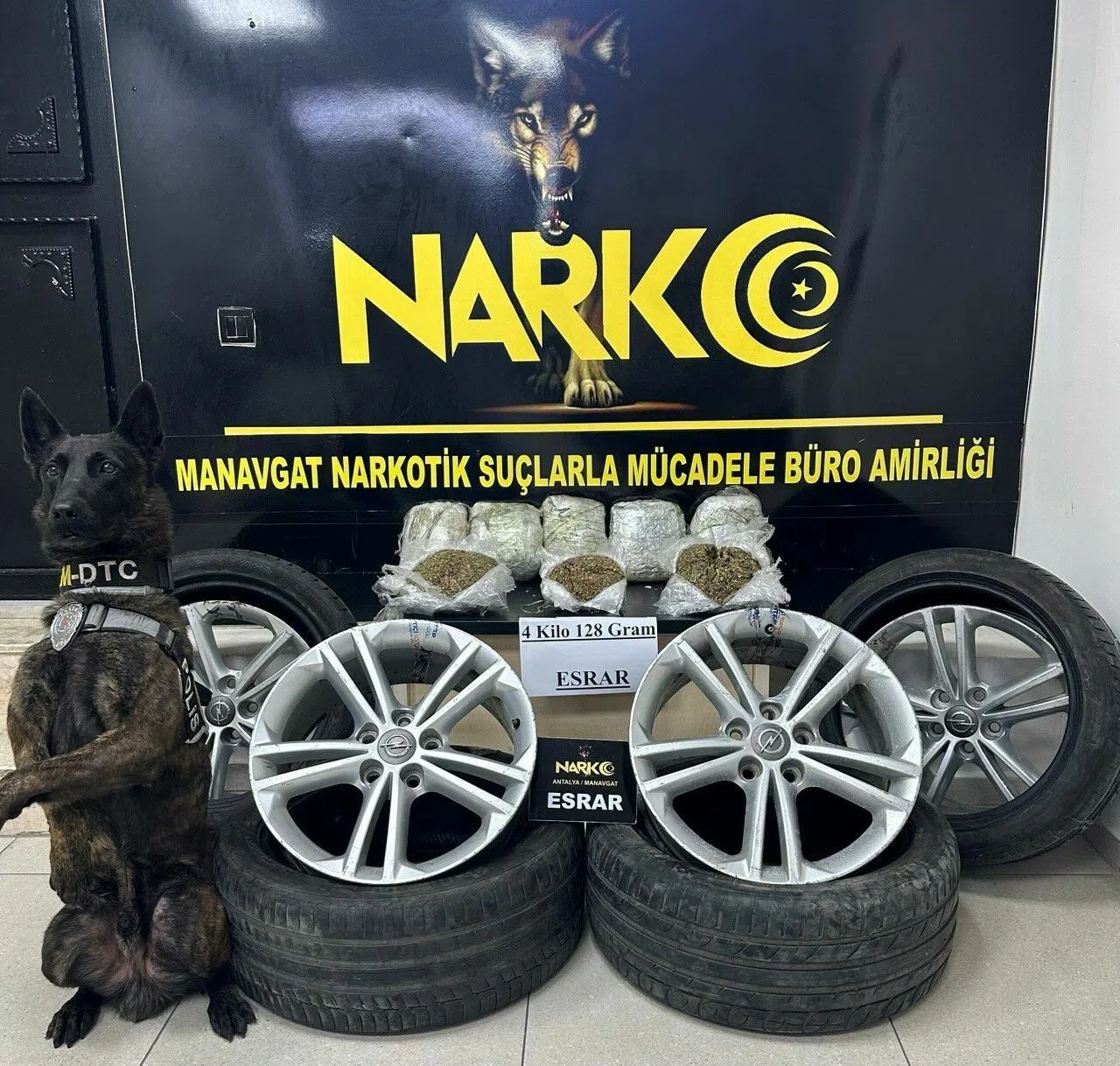 Ekipler, Antalya Şehirler Arası Otobüs Terminalinde, otogar emanet bölümüne aktarılmak istenen 7 adet araç lastiğinde yapılan aramada 59 parça paket içerisinde zulalanmış şekilde daralı 31,5 kilogram esrar maddesi ele geçirdi. Bir diğer operasyonda ise Manavgat ilçesinde bulunan kargo işletmesinde yapılan aramada 4 adet araç lastiği içerisine ikişer paket hâlinde toplam 8 paket içerisinde zulalanmış şekilde daralı 4 kilogram esrar maddesi tespit etti.