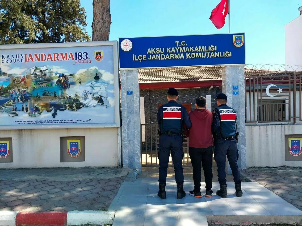 Aksu İlçe Jandarma Komutanlığı ekipleri ve Asayiş Şube Müdürlüğü JASAT ekipleri, 18 suç kaydı bulunan ve 15.5 yıl hapis cezasıyla aranan hükümlünün ilçede olduğunu belirledi. Çalışmaları genişleten ekipler, hükümlü T.Ç'nin arkadaşına ait bir bağ evinde saklandığını belirledi. Yapılan operasyonla yakalanan T.Ç, jandarmadaki işlemlerinin ardından cezaevine gönderildi. İHA