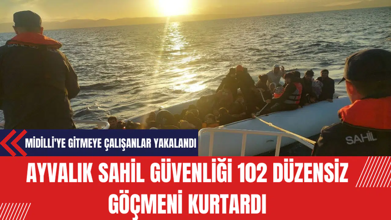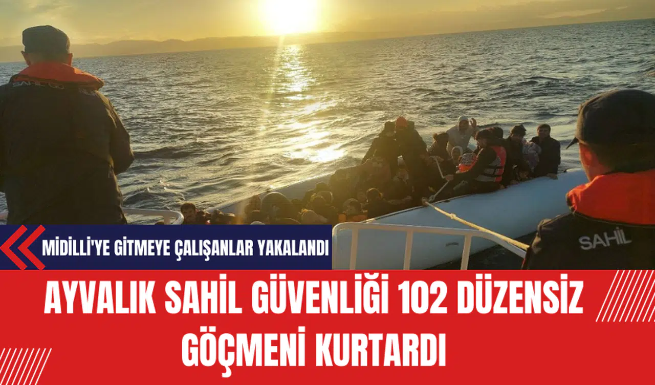 Balıkesir'in Ayvalık ilçesinde, yasa dışı yollarla Yunanistan'ın Midilli Adası'na gitmek isteyen 102 düzensiz göçmen karaya çıkarıldı.