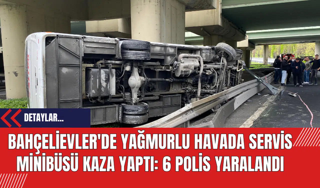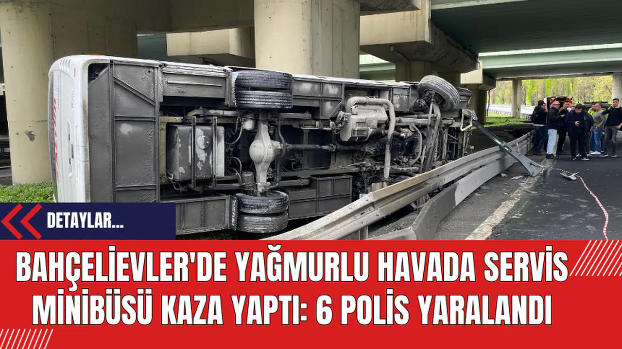Bahçelievler'de meydana gelen trafik kazasında, İstanbul Havalimanı'nda görevli polisleri taşıyan servis minibüsü, yağışlı havanın etkisiyle kayganlaşan yolda kontrolden çıkarak bariyerlere çarptı ve devrildi.