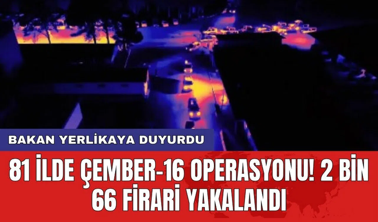 İçişleri Bakanı Ali Yerlikaya, sosyal medya hesabından yaptığı açıklamada, Türkiye genelinde 81 ilde 4 gündür devam eden "Aranan Şahıslara Yönelik" düzenlenen "Çember-16" operasyonlarında arama kaydı bulunan 2 bin 66 firarinin yakalandığını duyurdu.