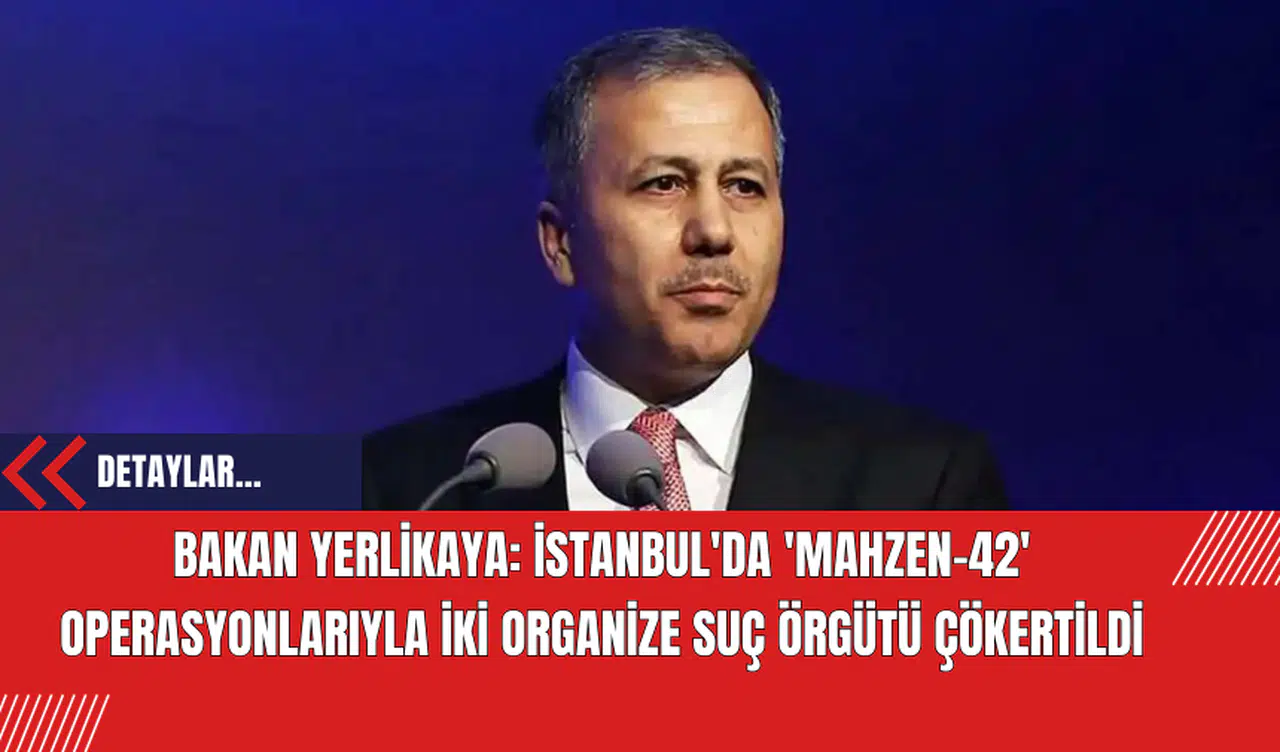 İçişleri Bakanı Ali Yerlikaya, İstanbul merkezli 2 ilde gerçekleştirilen “Mahzen-42” operasyonlarında, Numan Karakoç ve cezaevinde bulunan Hakan Akdoğan'ın liderlik ettiği iki ayrı organize suç örgütünün ortadan kaldırıldığını duyurdu.