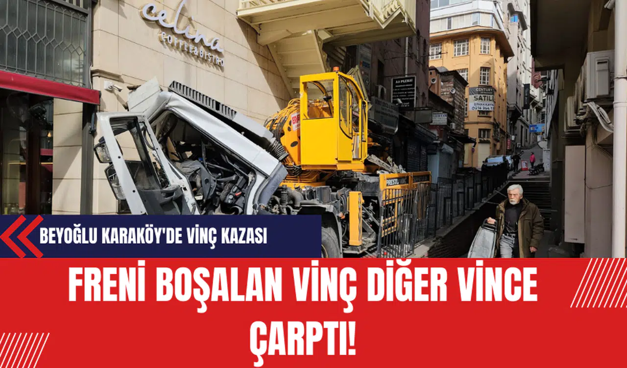 Beyoğlu Karaköy'de bir vinç kaza yaptı! Park halindeyken freni boşalan vinç, caddede bekleyen başka bir vince çarparak savruldu. Kaza, Tersane Caddesi'nde meydana geldi ve faciayı önleyen bir tesadüf yaşandı.