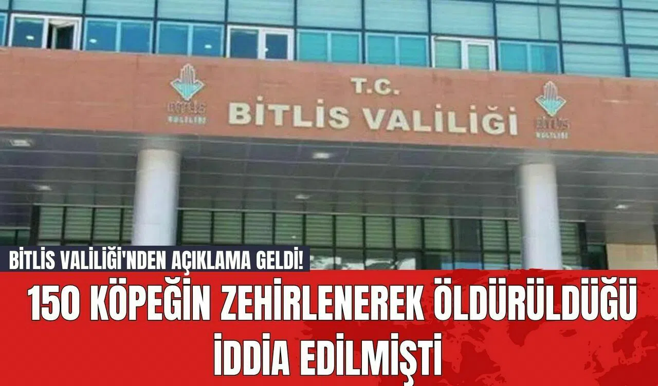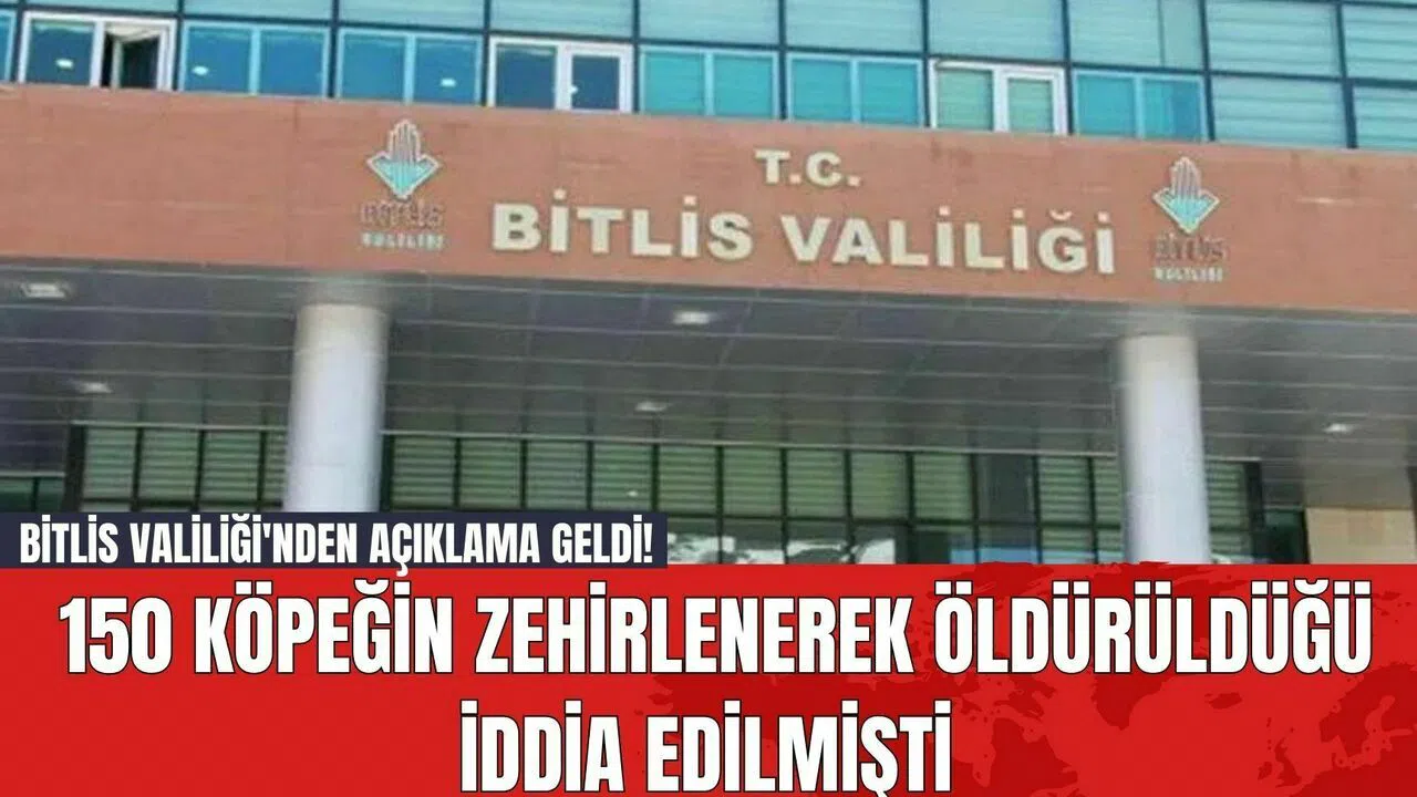 Bitlis Valiliği, sosyal medyada yayımlanan ve 150 köpeğin zehirlenerek öldürüldüğü iddialarına ilişkin yazılı bir açıklama yaptı. Valilik, bu iddiaların kesinlikle doğru olmadığını ve gerçeği yansıtmadığını duyurdu.