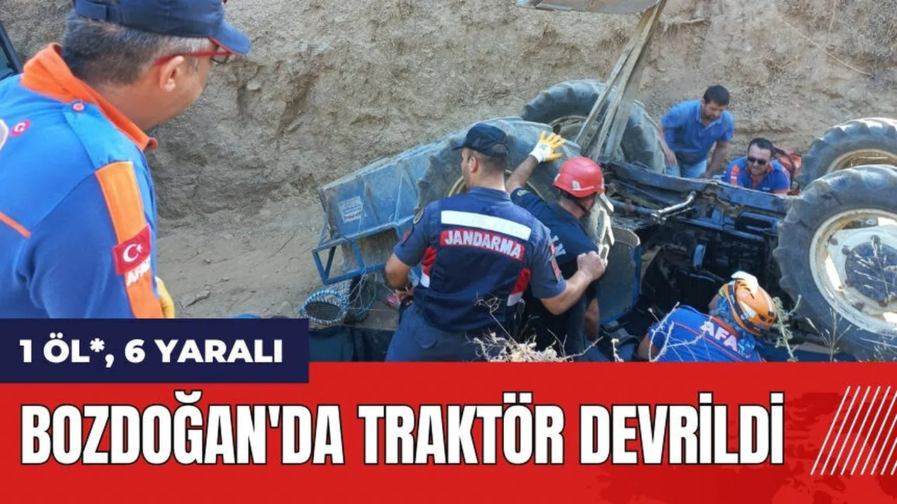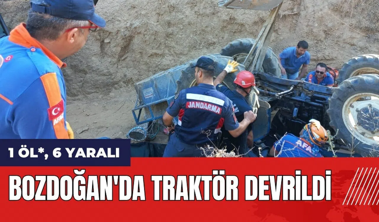 Aydın'ın Bozdoğan ilçesinde akşam saatlerinde traktörün devrilmesi sonucu meydana gelen kazada 1 kişi hayatını kaybetti, 6 kişi ise yaralandı.