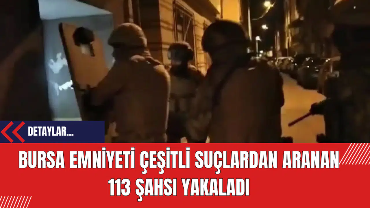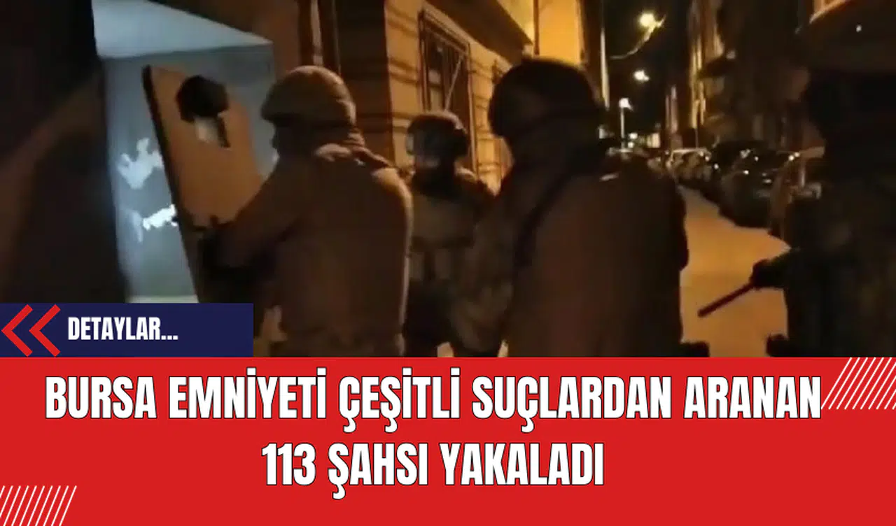 Bursa il merkezinde yapılan operasyonlarda çeşitli suçlardan aranan 113 şahıs yakalandı. Bu şahıslar arasında hakkında 5 ila 10 yıl arasında kesinleşmiş hapis cezası bulunan 8 kişi ve 5 yıl ve altında hapis cezası bulunan toplamda 43 kişi yer aldı.