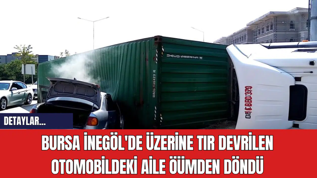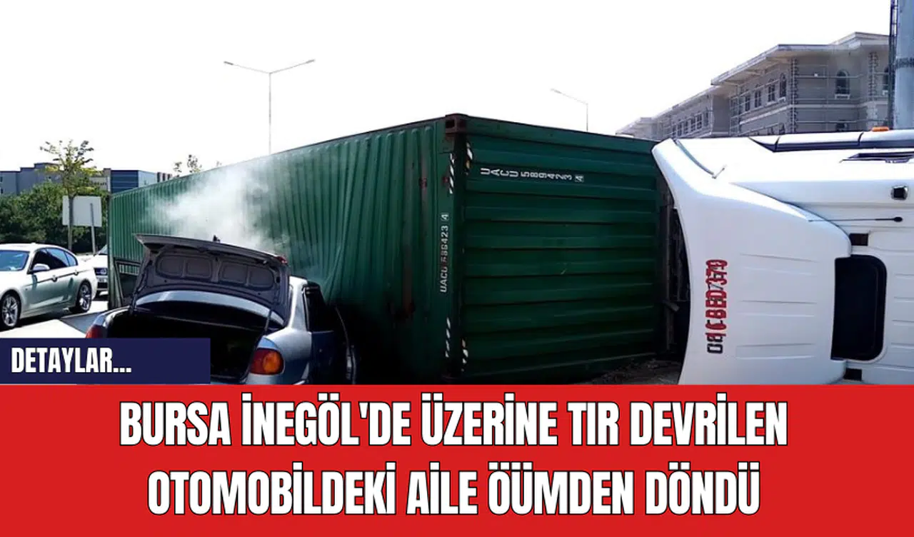 Bursa'nın İnegöl ilçesinde kontrolden çıkan tır, bir otomobilin üzerine devrildi. Kazada otomobil kullanılmaz hale gelirken, 1'i çocuk 2 kişi mucizevi bir şekilde ölümden döndü.