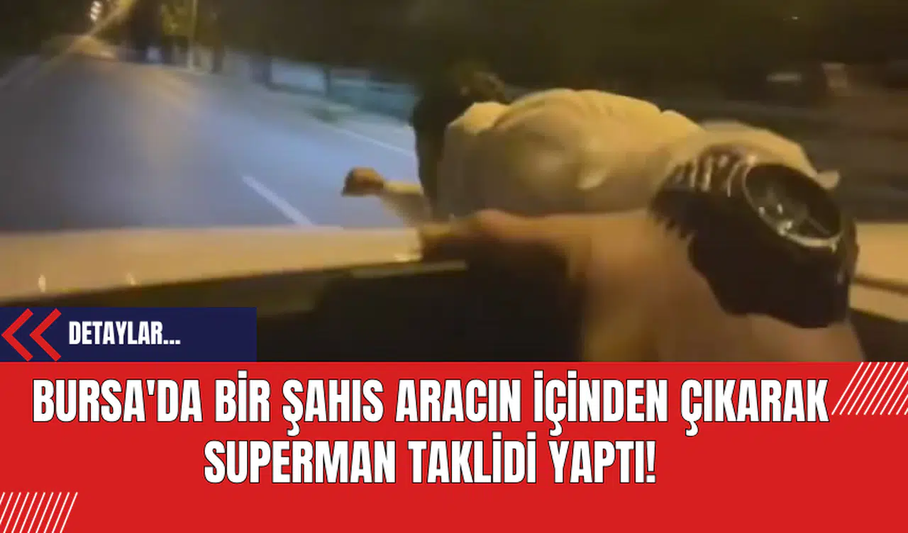 Bursa'da bir genç, seyir halindeki bir otomobilin camını açarak kendini "Superman" olarak tanımlayarak tehlikeli bir manevra gerçekleştirdi.