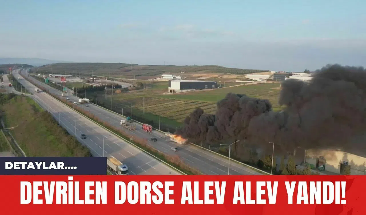 Edinilen bilgilere göre, henüz belirlenemeyen bir nedenle bir tırın dorsesi devrildi. Dorseyi taşıyan araç yoldan çıktıktan sonra yanmaya başladı. Sürücü, hızla durumu fark ederek dorsesini tırından ayırdı ve yangını itfaiyeye bildirdi.