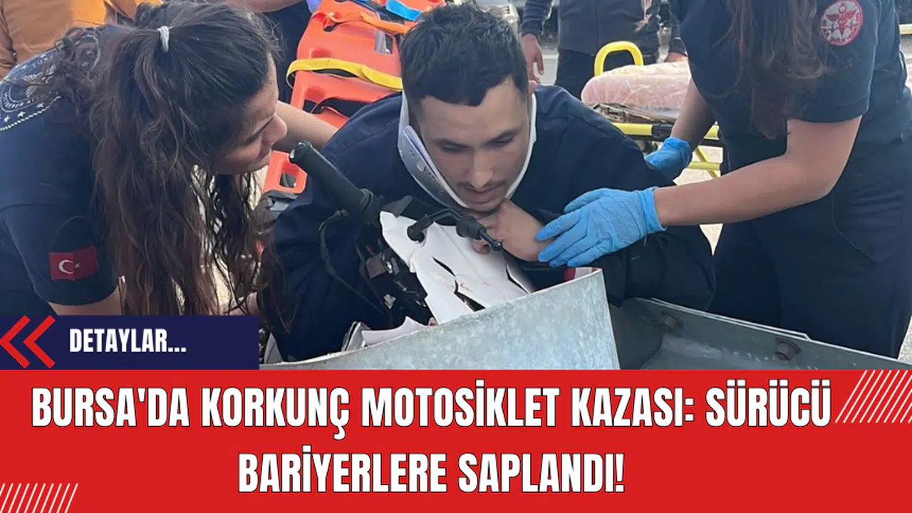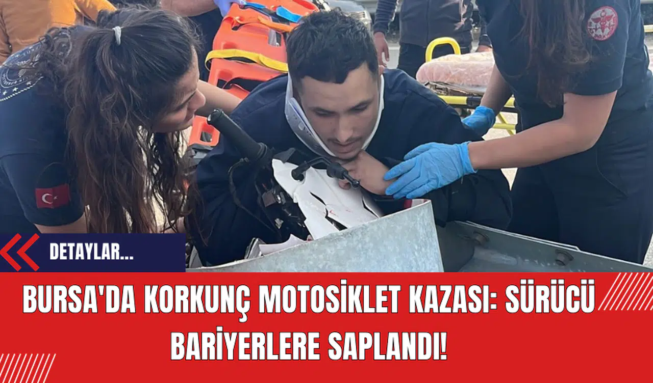 Bursa'nın Nilüfer ilçesi Otoban Görükle Bağlantı yolunda meydana gelen kazada, motosiklet başka bir aracın hafifçe çarpması sonucu kontrolden çıkarak bariyerlere saplandı. Motosiklet sürücüsü, olay yerine hızla gelen itfaiye ekipleri tarafından kurtarıldı.
