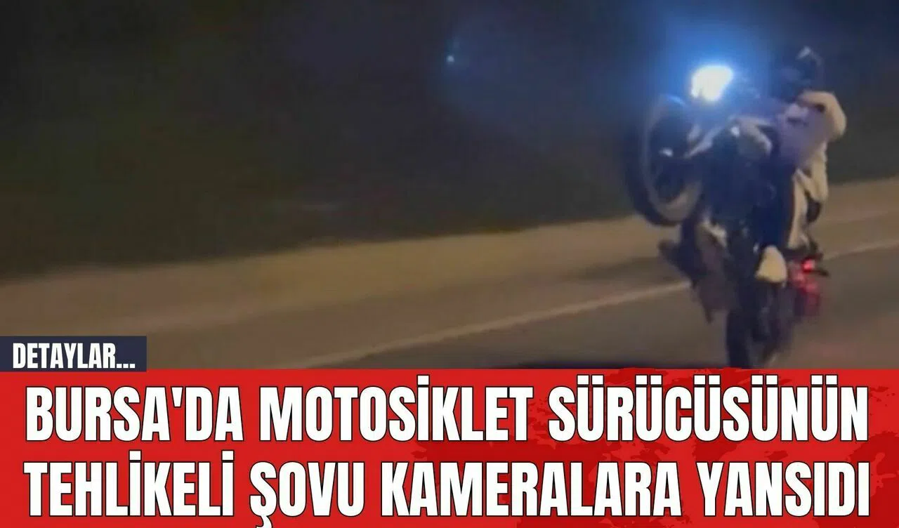 Bursa'da yaşanan tehlikeli bir motosiklet sürüşü, kameralara yansıdı. Mudanya Yolu üzerinde ilerleyen bir motosiklet sürücüsü, yaptığı tehlikeli hareket ile yürekleri ağızlara getirdi. Sürücü, ana yolda tek teker üzerinde kilometrelerce ilerleyerek trafikteki diğer sürücülerin hayatını tehlikeye attı.