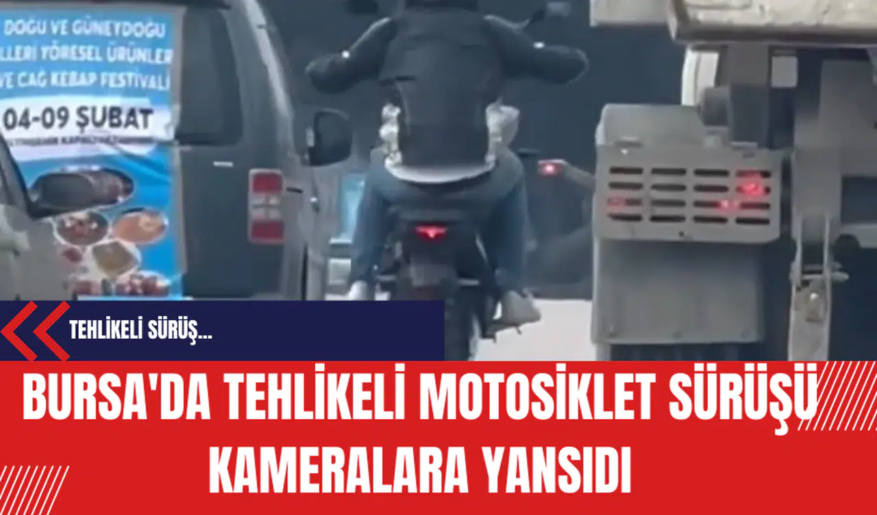 Bursa'da, İzmir Yolu Caddesi üzerinde trafiği tehlikeye düşüren bir motosiklet sürücüsü, akıcı trafikte ilerlerken plakasını kapatarak makas atıp ardından tek tekerlek üzerinde ilerledi. O anlar, çevredeki vatandaşlar tarafından cep telefonu kameralarıyla kaydedildi.