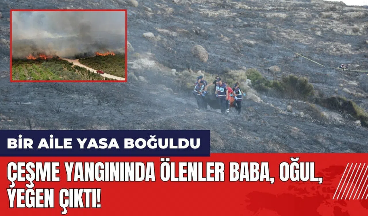 İzmir'in Çeşme ilçesi Delikli Koy mevkiinde çıkan orman yangınında hayatını kaybedenlerin baba, oğlu ve yeğeni olduğu öğrenildi. Cenazeler İzmir Adli Tıp Kurumu'na kaldırıldı.