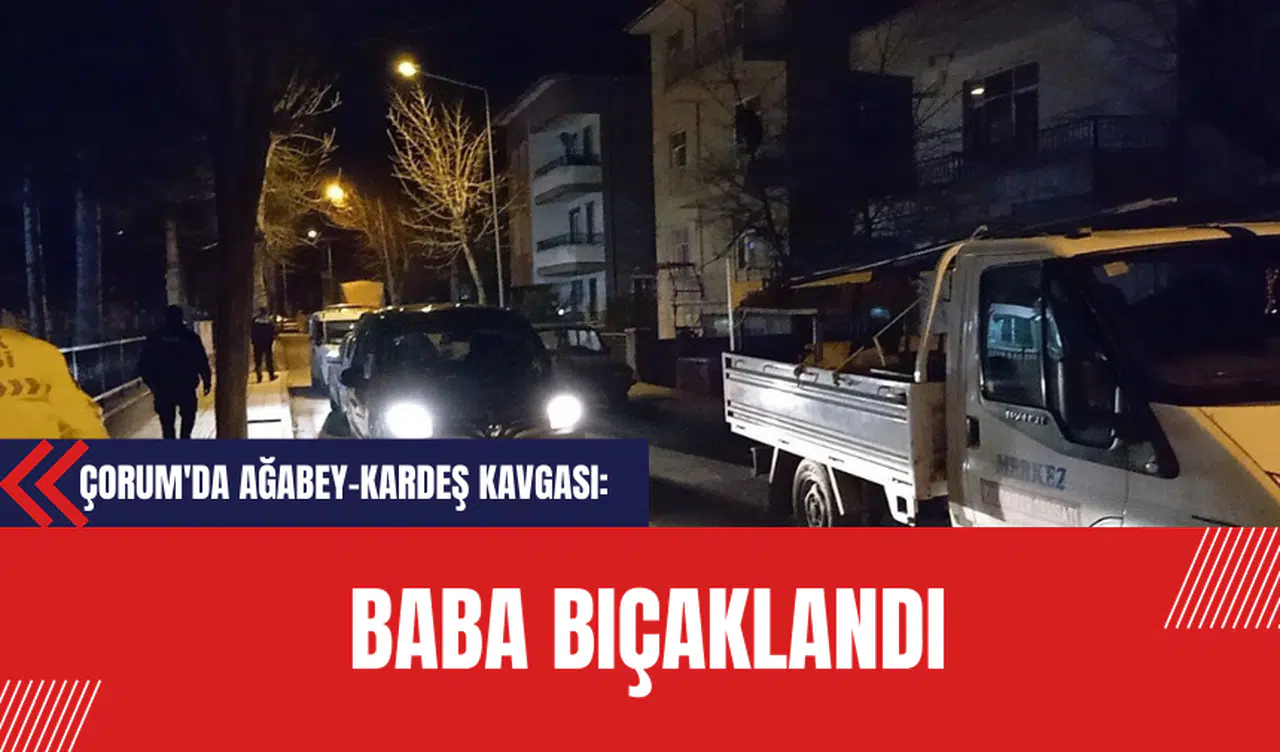 Çorum'da yaşanan olayda, K.Ü. (18) ve E.Ü. (21) isimli kardeşler arasında evde aniden başlayan bir tartışma büyüyerek kavgaya dönüştü. Tartışmanın büyümesiyle birlikte, çocuklarını ayırmak isteyen baba N.Ü. bıçak darbesiyle yaralandı.