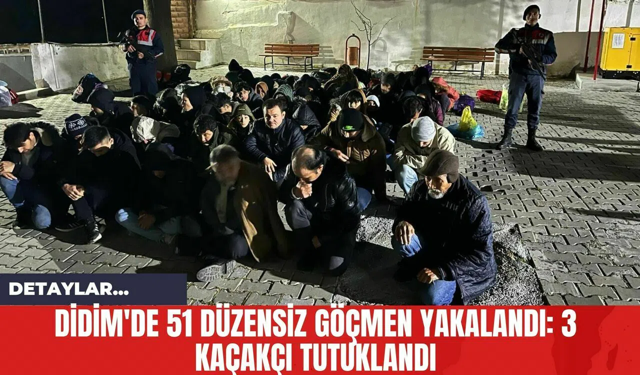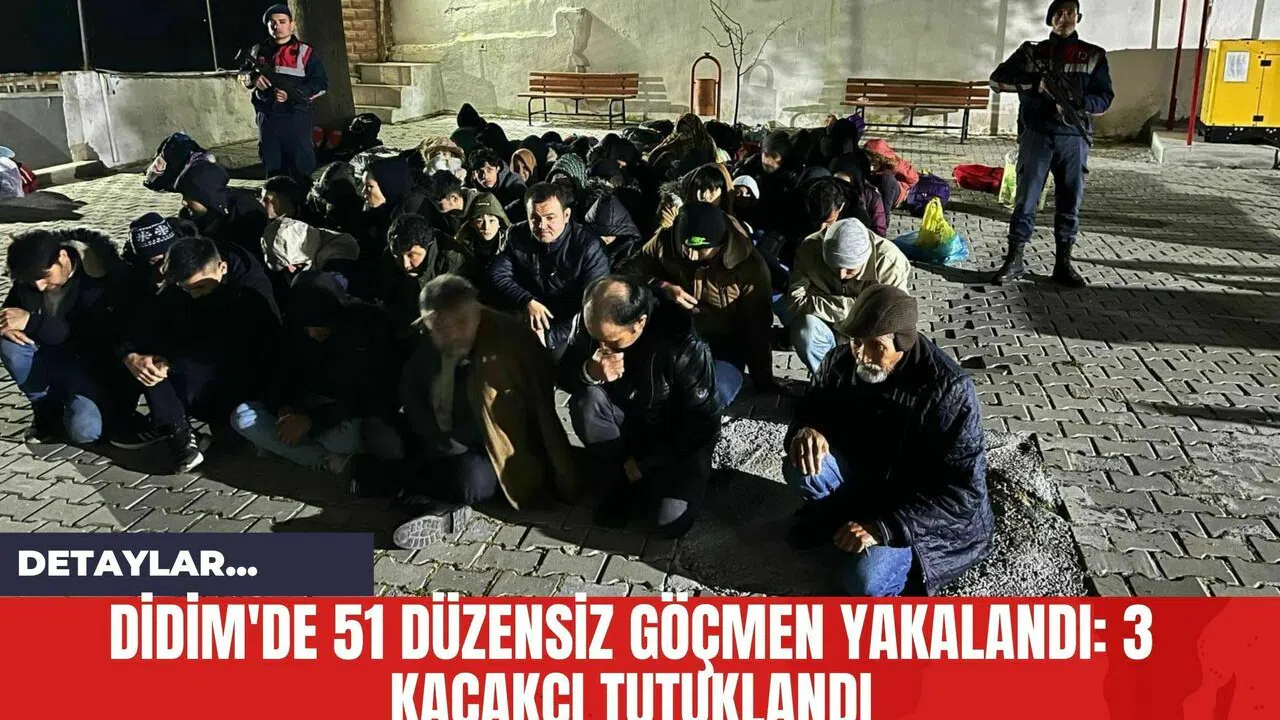 Didim İlçe Jandarma Komutanlığı ekipleri tarafından gerçekleştirilen operasyonda bir minibüs içerisinde 51 düzensiz göçmen ile birlikte, olayla ilişkili 3 göçmen kaçakçısı yakalandı.