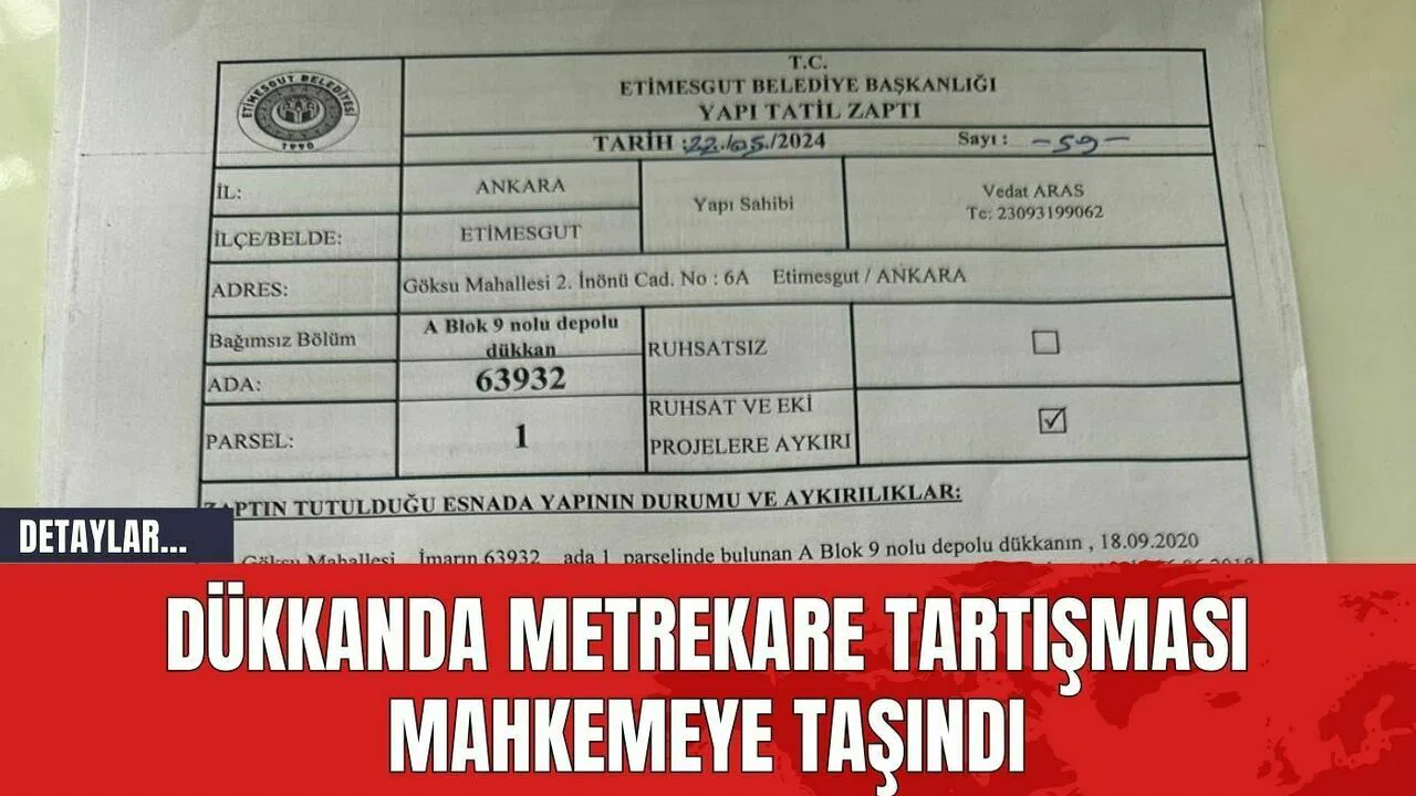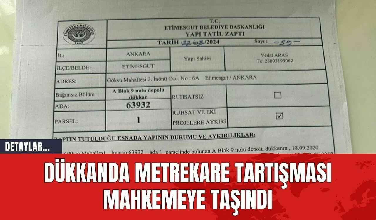 Ankara'nın Etimesgut ilçesinde faaliyet gösteren ünlü bir börekçi firmasının bayisi olan Aydın Eşer, kiraladığı dükkanın iskan belgesindeki metrekare farkı nedeniyle davalık oldu. Eşer, Göksu Mahallesi'nde bulunan dükkanın yaklaşık bin 100 metrekare olduğunu iddia ederken, iskan belgesinde bu alanın sadece 89 metrekare olarak kaydedildiğini belirtti.