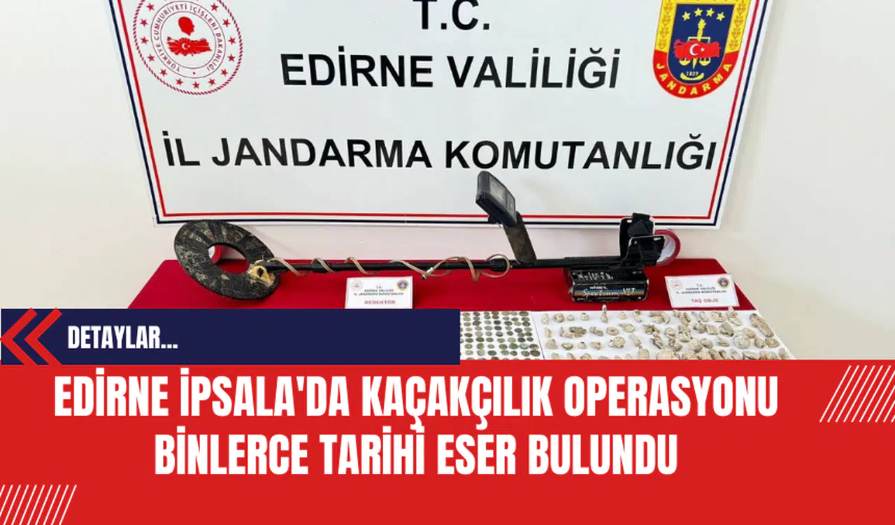 Edirne'nin İpsala ilçesinde jandarma ekipleri tarafından düzenlenen kaçakçılık operasyonunda toplam bin 185 adet tarihi eser ile 1 adet arama dedektörü ele geçirildi. Operasyon, İpsala jandarma ekiplerinin istihbarat çalışmaları sonucunda gerçekleştirildi.