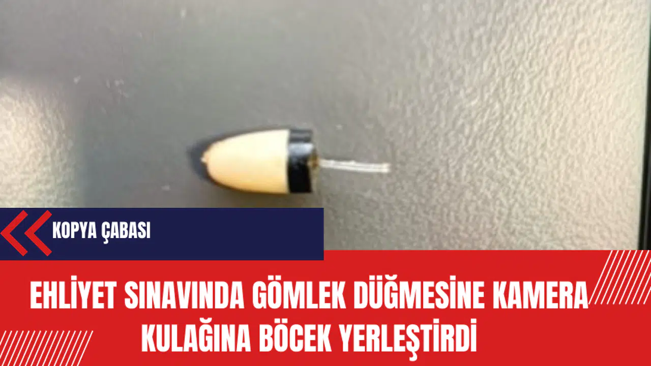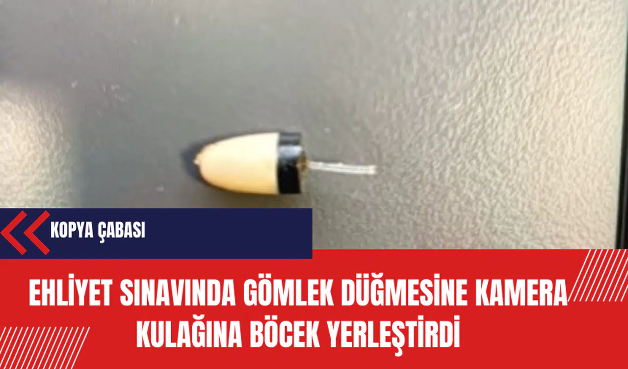 Kütahya'nın Tavşanlı ilçesinde, E-Sınav Merkezi'nde gerçekleşen yazılı ehliyet sınavında kopya çekmeye çalışan bir kişi ve suç ortağı adli makamlara sevk edildi. Sınav esnasında, B.K. adlı şahıs, gizli kamera ve özel dinleme cihazı kullanarak kopya çekmeye çalıştı. Gömlek düğmesine yerleştirdiği gizli kamera ile soruları karşı tarafa görüntülü olarak ileten B.K., kulağındaki "böcek" adı verilen özel dinleme cihazıyla cevapları alarak sınavı geçmeye çalıştı. Ancak durum, görevli öğretmenler tarafından fark edildi.