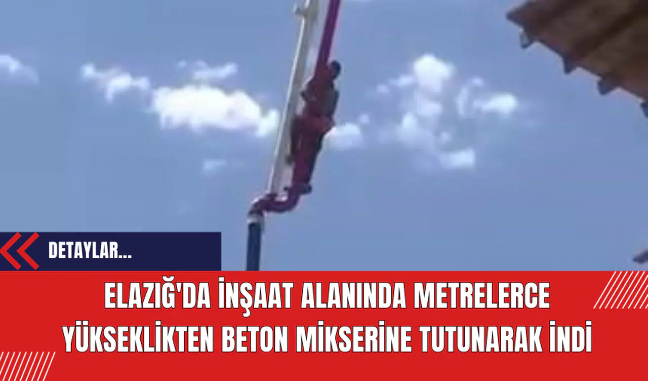 Elazığ'ın Aksaray Mahallesi'nde bulunan bir inşaat alanında yaşanan olay, nefesleri kesti. İnşaatın üst katında çalışan bir işçi, hayatını tehlikeye atarak beton mikserin hortumuna tutunarak metrelerce yükseklikten indi.