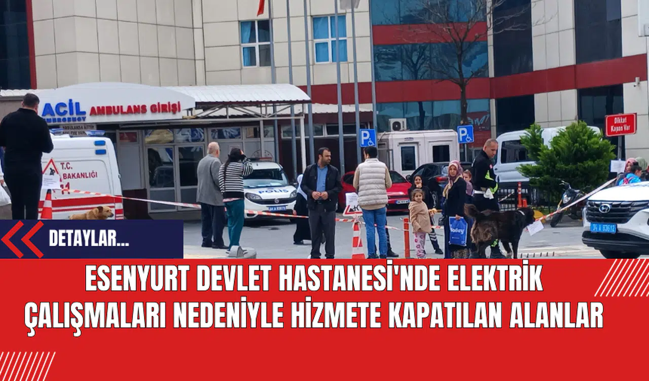 Esenyurt Devlet Hastanesi'nde, yeni yapılan ek binadaki elektrik çalışmaları sebebiyle ameliyathane ve yoğun bakım servisi haricindeki tüm alanlar geçici olarak kapatıldı. Bu durum, hastane faaliyetlerinde önemli bir aksamaya neden oldu.