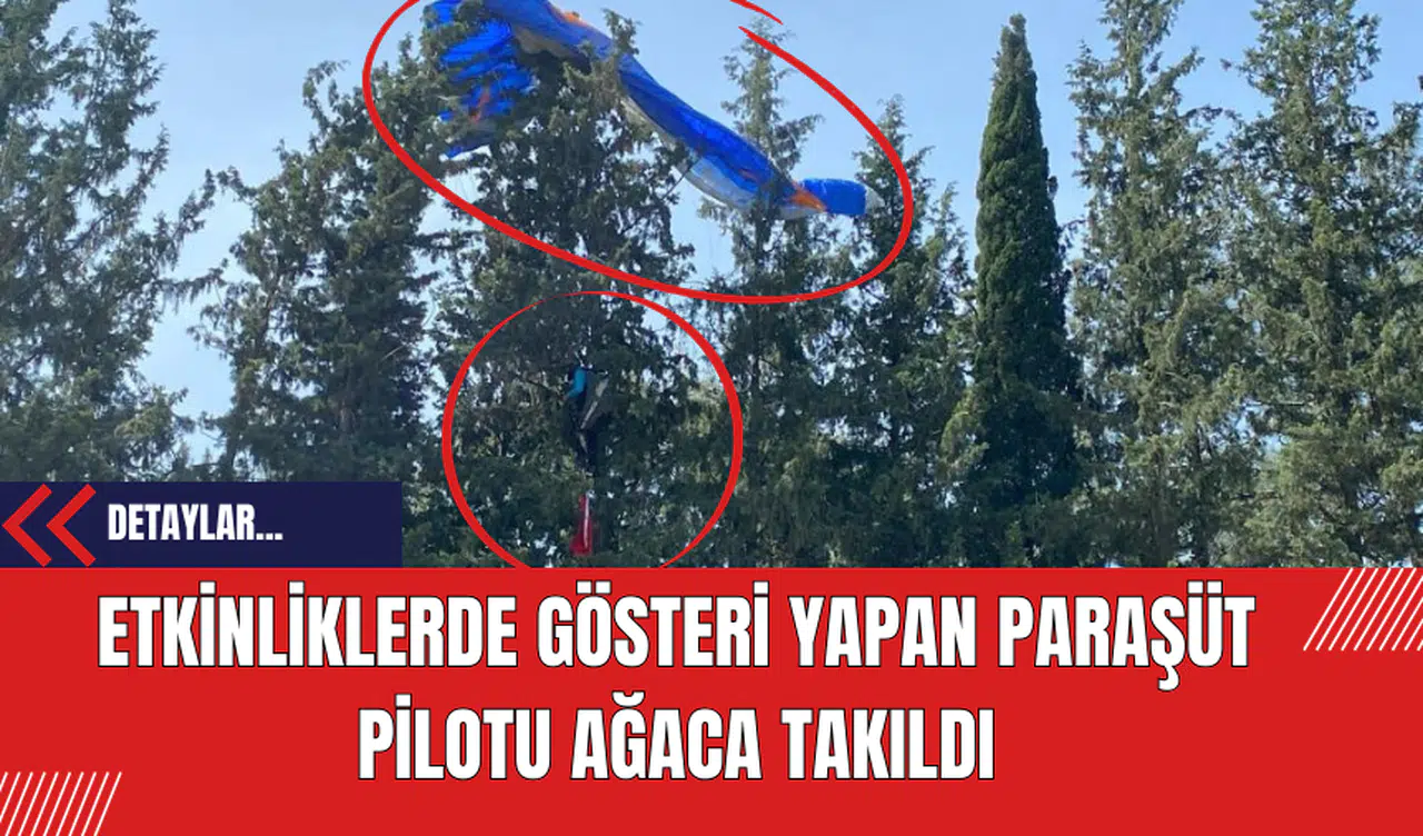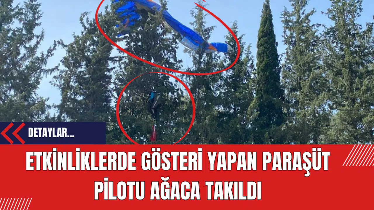 Osmaniye’nin Düziçi ilçesinin düşman işgalinden kurtuluşunun 104. yıldönümü, kutlamalarında gösteri uçuşu yapan paraşüt pilotu rüzgarın azizliğine uğrayarak ağacın dallarına takıldı.
