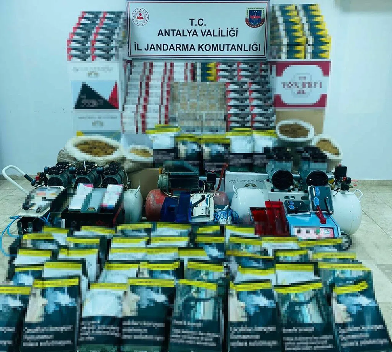 İl Jandarma Komutanlığına bağlı Kaçakçılık ve Organize Suçlarla Mücadele (KOM) Şube Müdürlüğü, Asayiş Şube Jandarma Suç Araştırma Timleri (JASAT) ve Döşemealtı İlçe Jandarma Komutanlığı ekipleri ilçede 2 şahsın ikamet adreslerinde sigara imal ederek satış yaptığını belirledi. Eve yapılan operasyonda; 3 adet elektrikli sigara sarma makinesi, 3 adet hava kompresörü, 6 adet manuel sigara sarma makinesi, 110 kilogram kıyılmış kaçak tütün, 160 bin adet boş makaron, 18 bin adet tütün doldurulmuş makaron ve 25 bin adet ambalaj ele geçirildi. Gözaltına alınan 2 şüpheli hakkında adli işlemlere başlanıldığı bildirildi.
