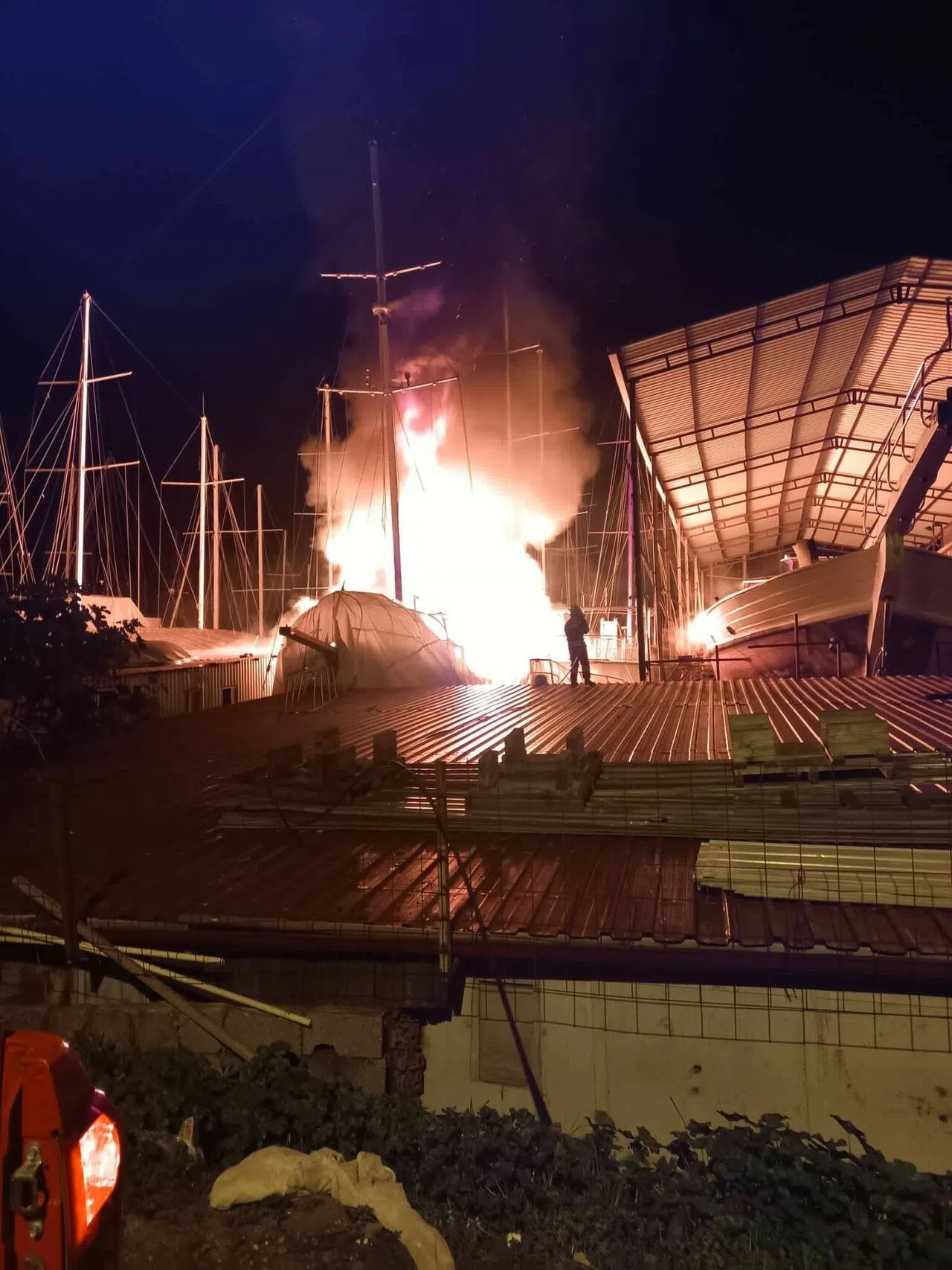 Yangın, Fethiye'nin Karagözler Mahallesi’nde meydana geldi. Edinilen bilgiye göre, Fevzi Çakmak Caddesi üzerindeki yat çekek yerinde henüz bilinmeyen bir nedenle yangın çıktı. Sabaha karşı saat 05.55 sıralarında çıkan yangında bir anda alevler yükseldi. Alevleri fark eden vatandaşlar durumu 112 Acil Çağrı Merkezi’ne bildirdi. İhbar üzerine bölgeye çok sayıda itfaiye, polis ve sağlık ekipleri sevk edildi. Kısa sürede bölgeye gelen Fethiye İtfaiye Grup Amirliği ekipleri, yangına 7 arazöz ve 19 kişilik ekiple müdahale etti. Yangın 1 saatte kontrol edilip söndürülürken, yangında 4 adet teknenin zarar gördüğü öğrenildi. Alevlerin kontrol altına alınmasının ardından ekipler, soğutma çalışması gerçekleştirdi. Ahşap teknelerin zarar gördüğü yangında, büyük çaplı maddi hasar meydana geldi. Yangının çıkış nedeninin bulunması için inceleme başlatıldı.