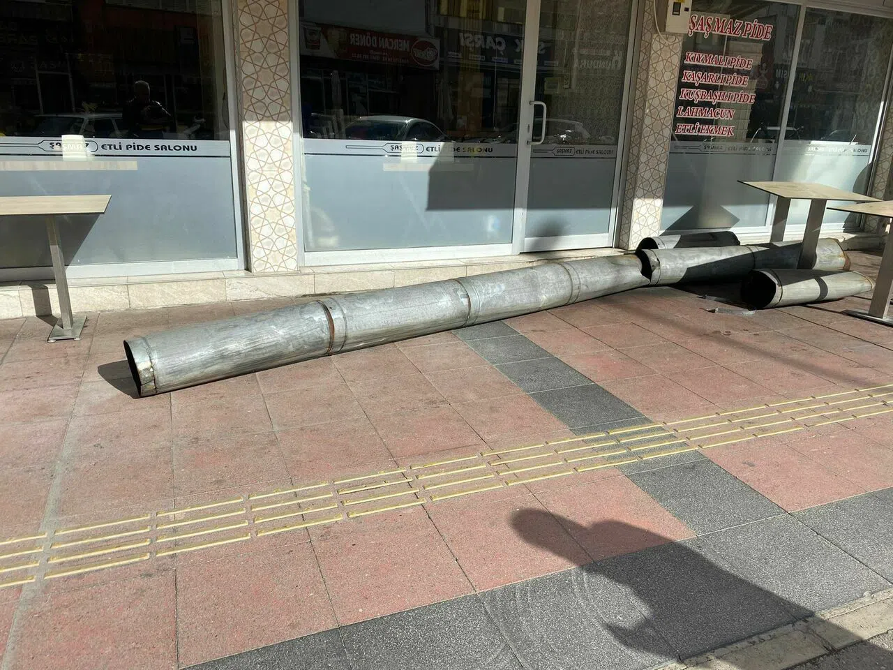 Şans eseri ucuz atlatılan olay sonrası bir aracın camları kırıldı. Pidecilik işiyle uğraşan Selçuk Şaşmaz, "Akşam dükkanı kapatmıştık, saat 20.00 civarlarında gelen fırtına nedeniyle bize ait olan baca komple aşağıya göçmüş. Karşıda otomobilin camını kırmış. Maddi hasar vardı onu da karşıladık. Kamera kayıtlarını inceledik, 3-5 saniye önce olsaymış birisinin üzerine düşmüş olabilirmiş. Çok şükür insanlara bir şey olmadı" şeklinde konuştu. (İHA)