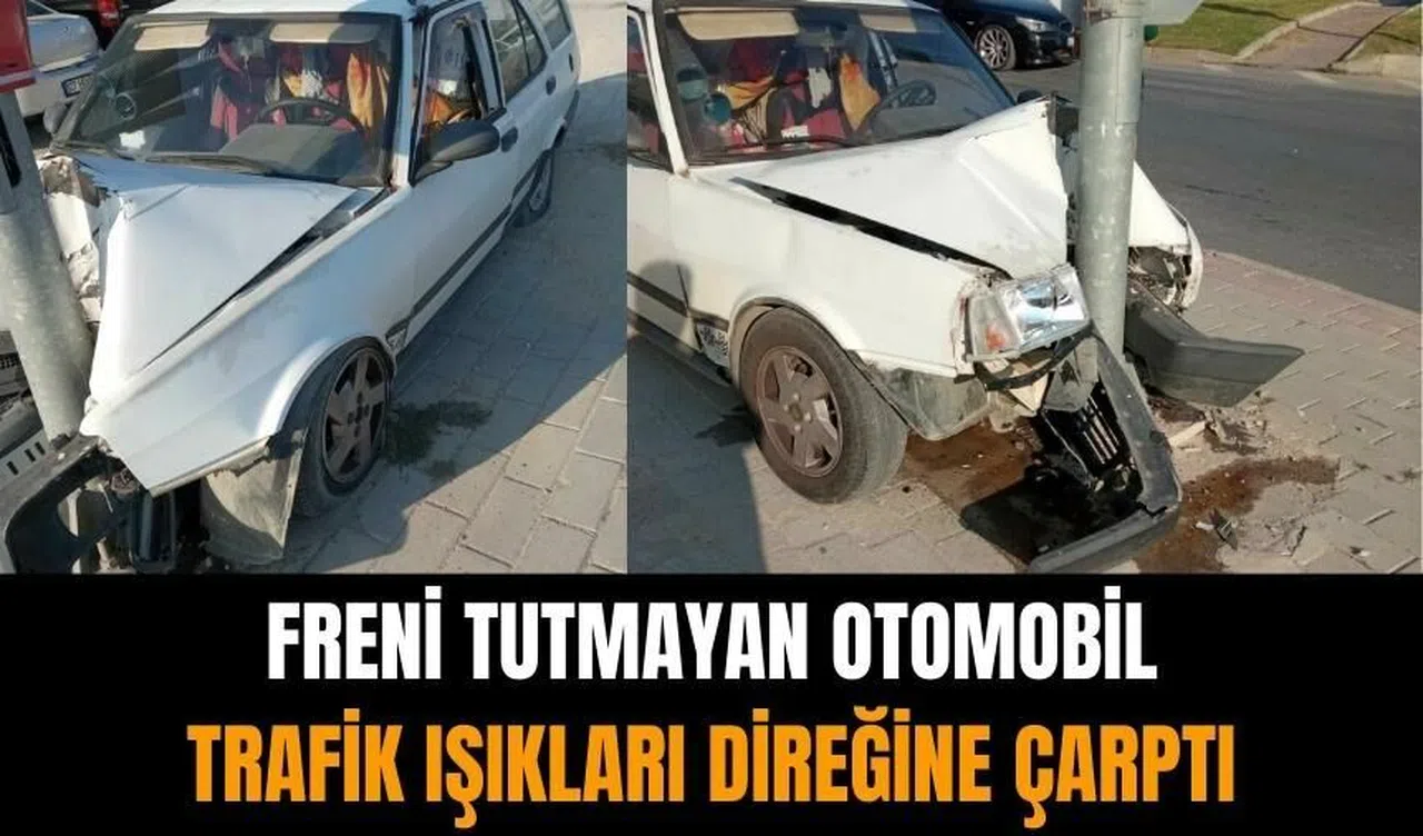 Otomobil sürücüsü, frenlerin tutmadığını, araçlara çarpmamak için önce kaldırıma ardından da trafik ışıklarının direğine çarptığını söyledi.