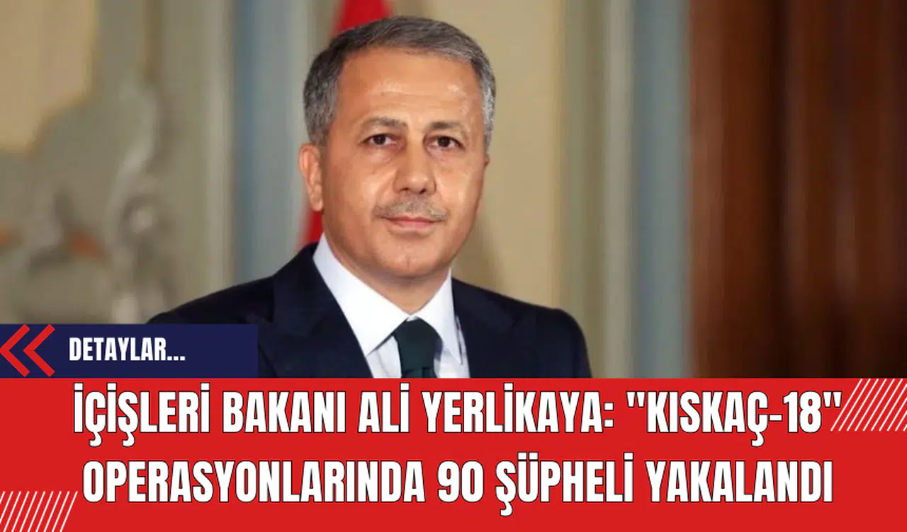 İçişleri Bakanı Ali Yerlikaya, son 4 gün içinde FETÖ'ye yönelik 17 ilde gerçekleştirilen "Kıskaç-18" operasyonlarında toplam 90 şüphelinin yakalandığını bildirdi.