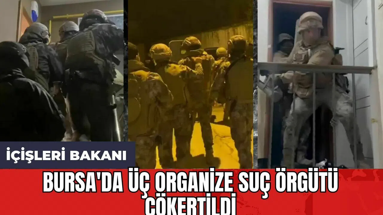 İçişleri Bakanı Yerlikaya, sosyal medya hesabından yaptığı açıklamada, Bursa'da gerçekleştirilen "Kafes-46” operasyonlarında, Bülent Çetkin'in liderliğini yaptığı Organize Suç Örgütü, Osman Deliçay'ın liderliğini üstlendiği Organize Suç Örgütü ve Muhammet Tayyar Türkeş'in (Yurtdışı firar) liderliğini yaptığı 3 ayrı Organize Suç Örgütü'nün çökertildiğini belirtti.