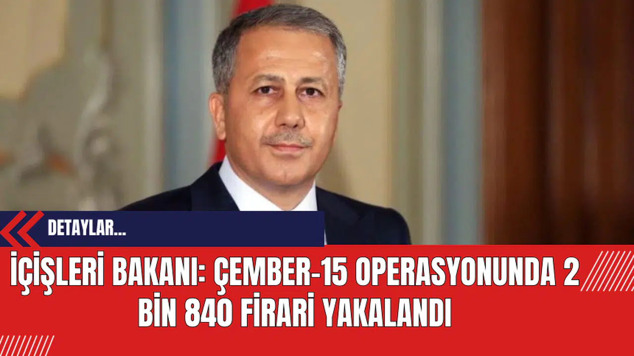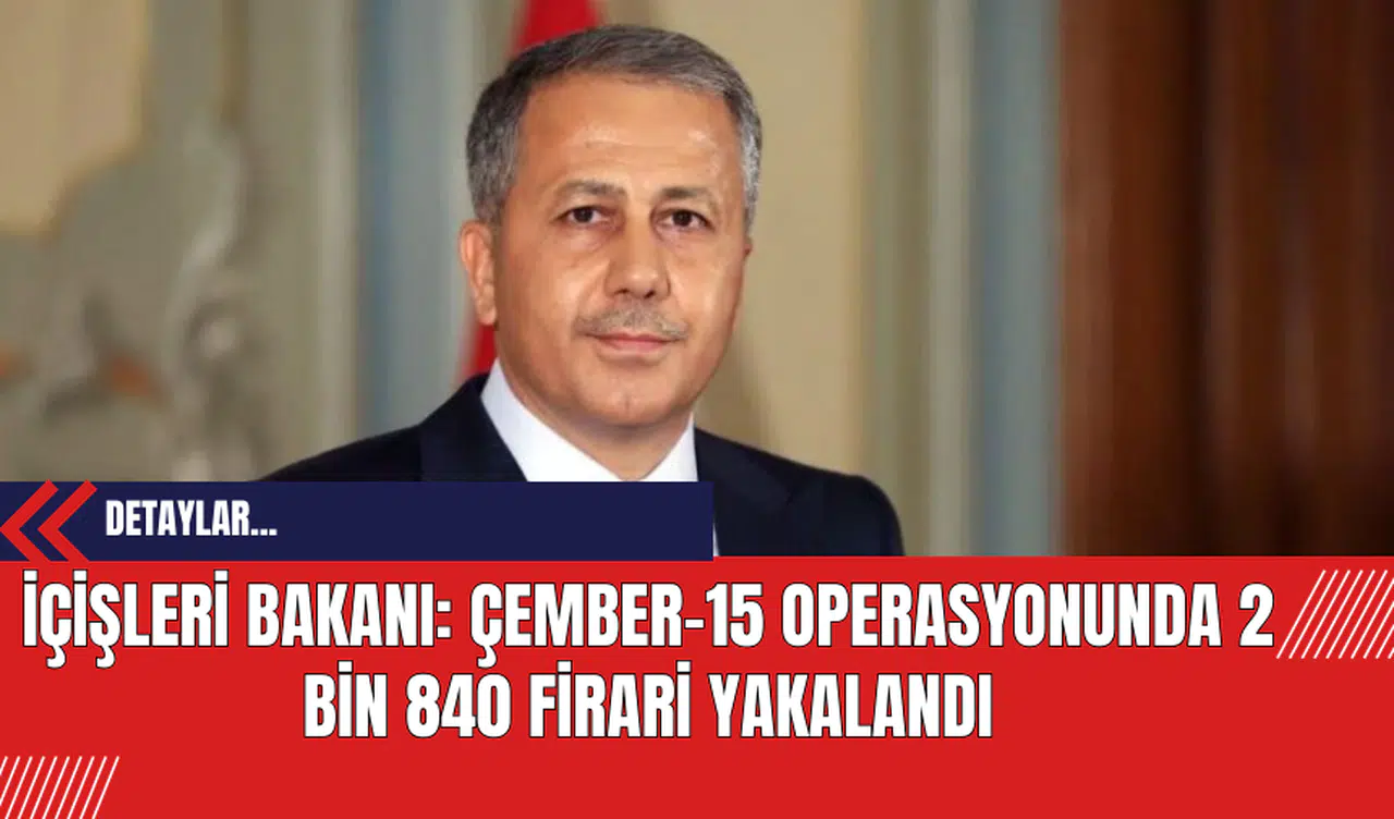 İçişleri Bakanı Ali Yerlikaya, Türkiye genelinde 4 gün boyunca devam eden "Çember-15" operasyonlarında, arama kaydı bulunan 2 bin 840 firarinin yakalandığını duyurdu.