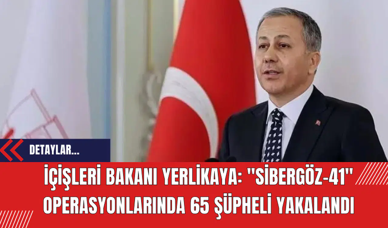 İçişleri Bakanı Ali Yerlikaya, jandarma tarafından 13 ilde gerçekleştirilen yasa dışı bahis ve nitelikli dolandırıcılık suçlarına yönelik "Sibergöz-41" operasyonlarında 65 şüphelinin yakalandığını açıkladı.