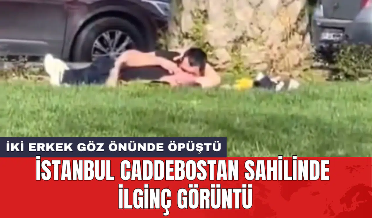 İstanbul'un Caddebostan sahilinde dikkat çeken bir olay yaşandı. Çimlere uzanan iki erkek, çevredeki vatandaşların gözü önünde aldırmadan öpüştü. Caddebostan sahilinde dinlenen vatandaşlar, birdenbire çimlere uzanan iki erkeğin öpüşmesine şahit oldu. Olayın yaşandığı yerde bulunanlar, şaşkınlıkla bu manzarayı izledi.